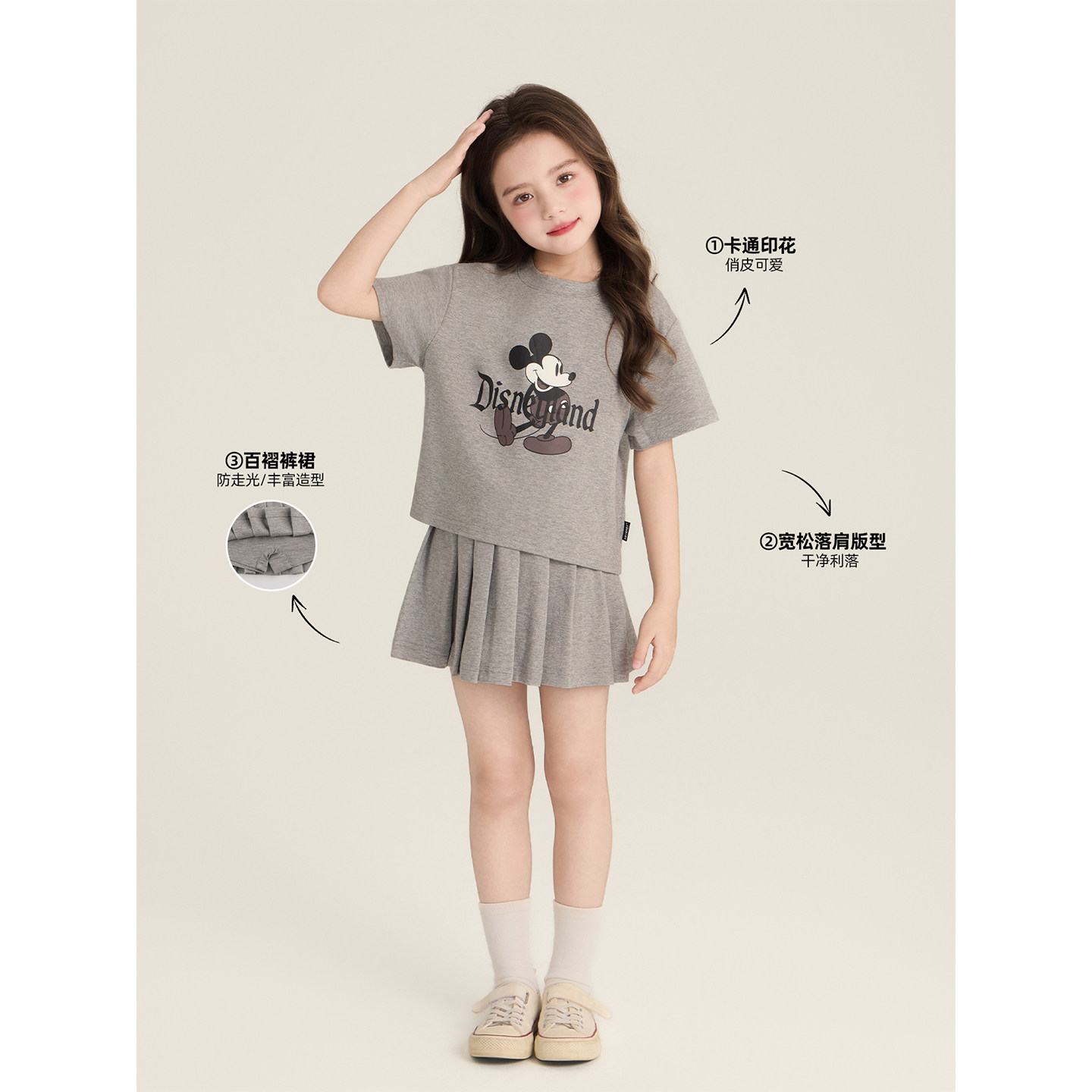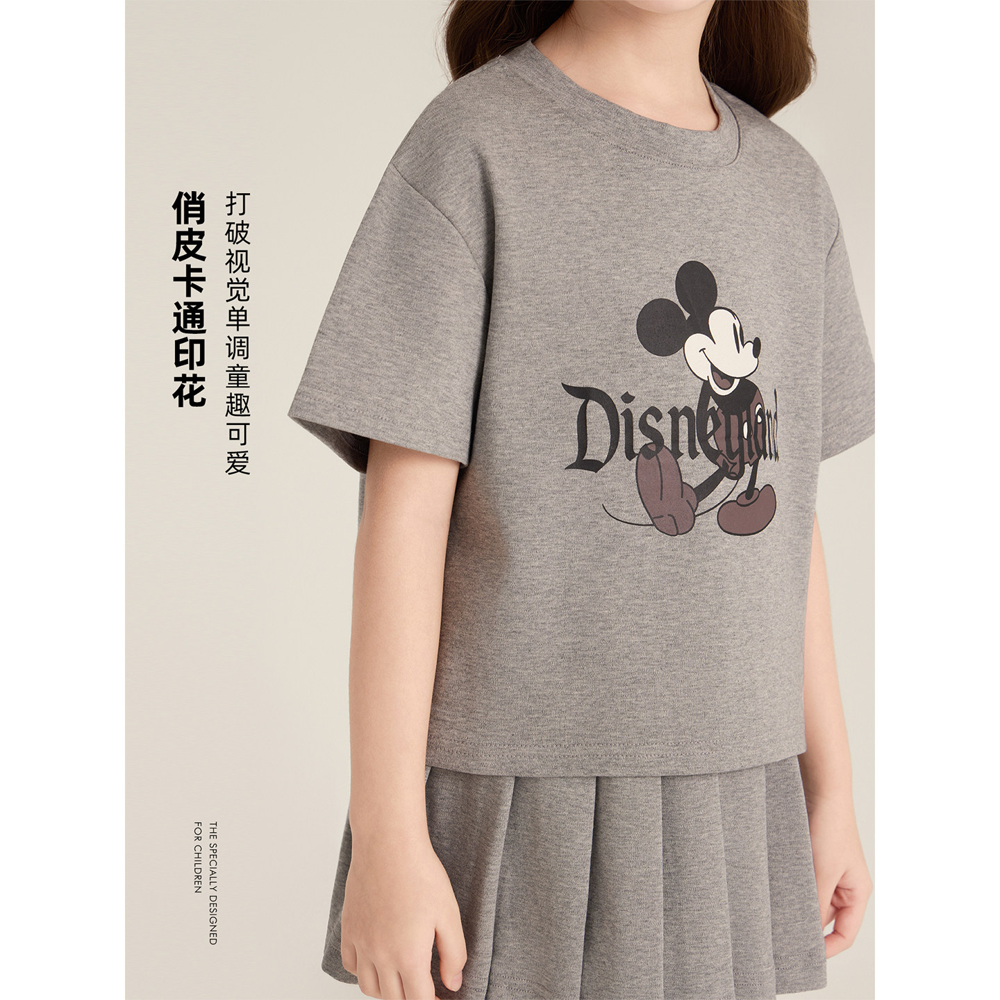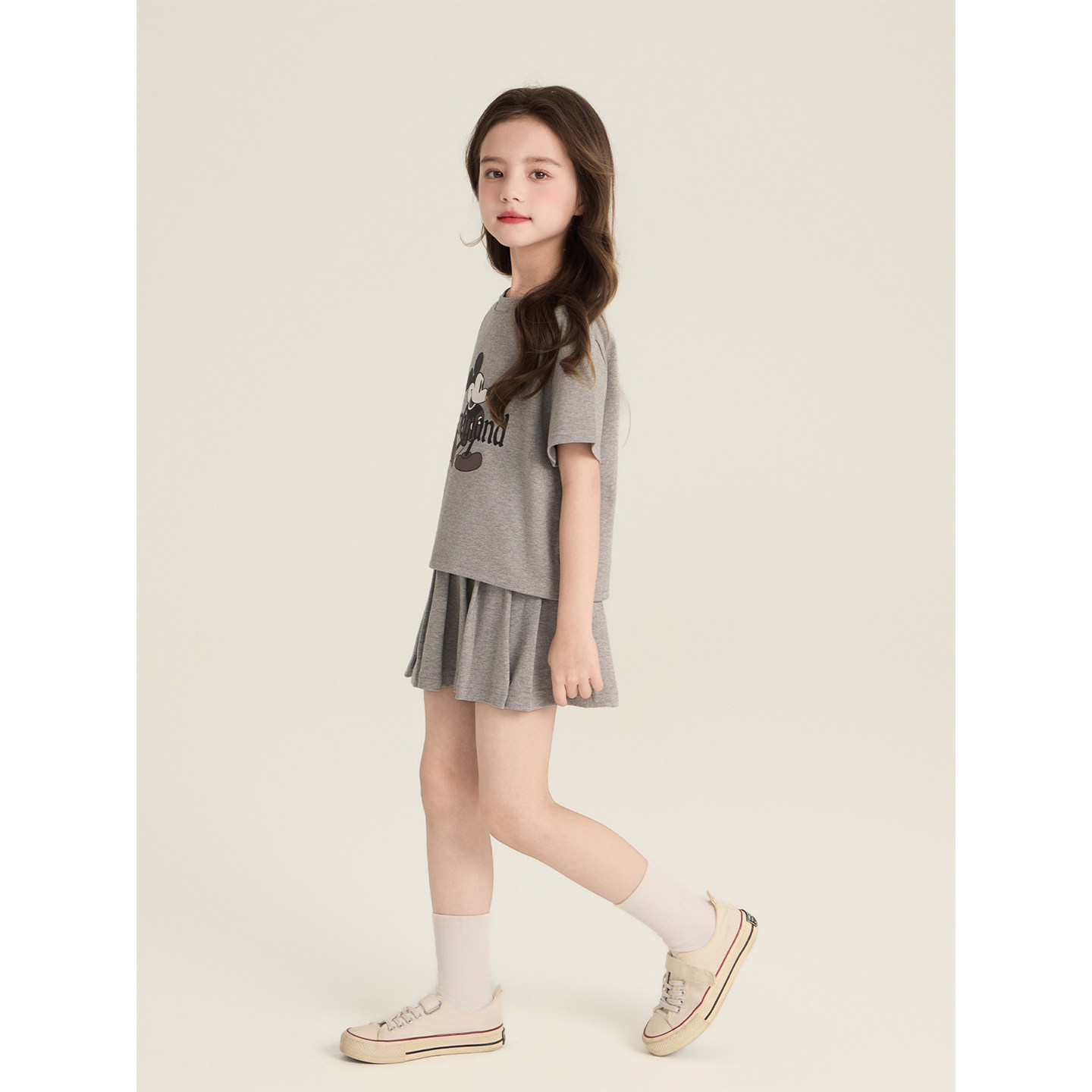 Amybaby女童套装夏季2026新款韩版洋气卡通印花T恤纯色半身裙