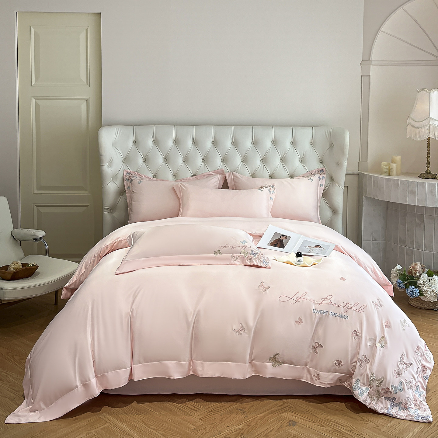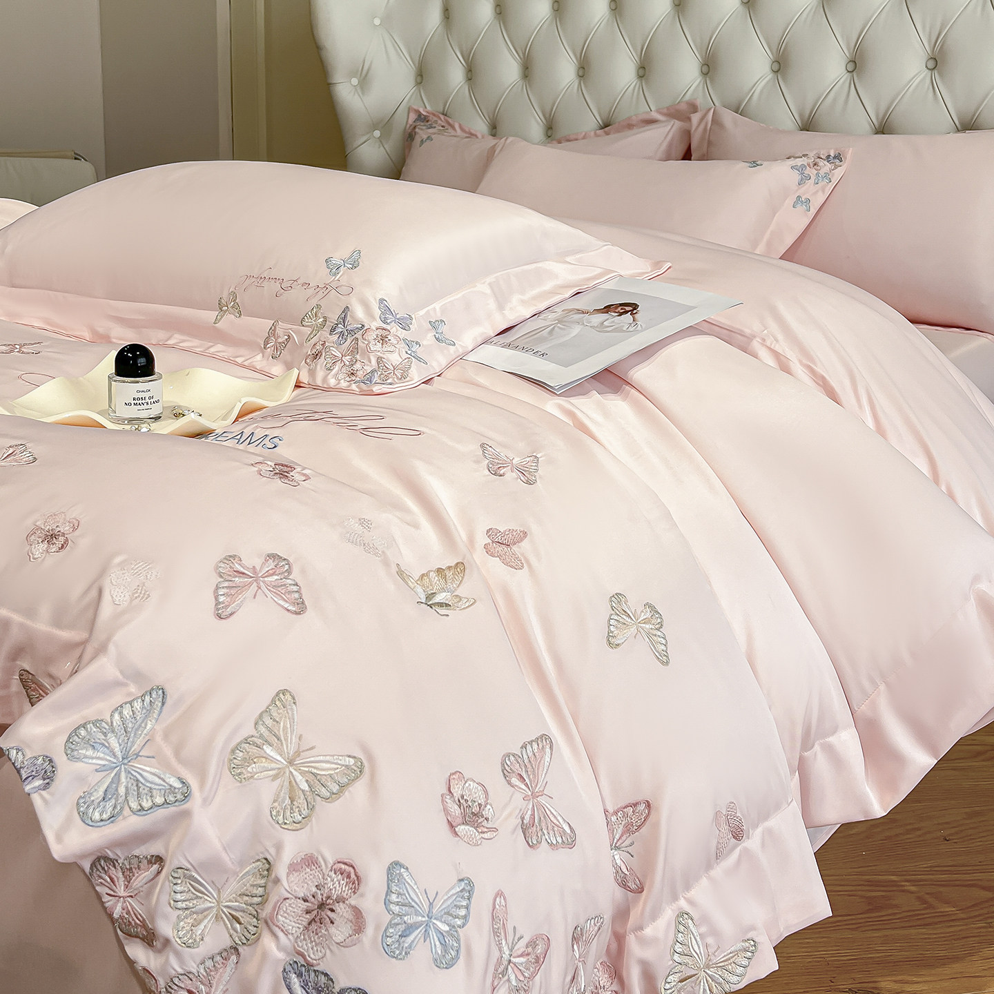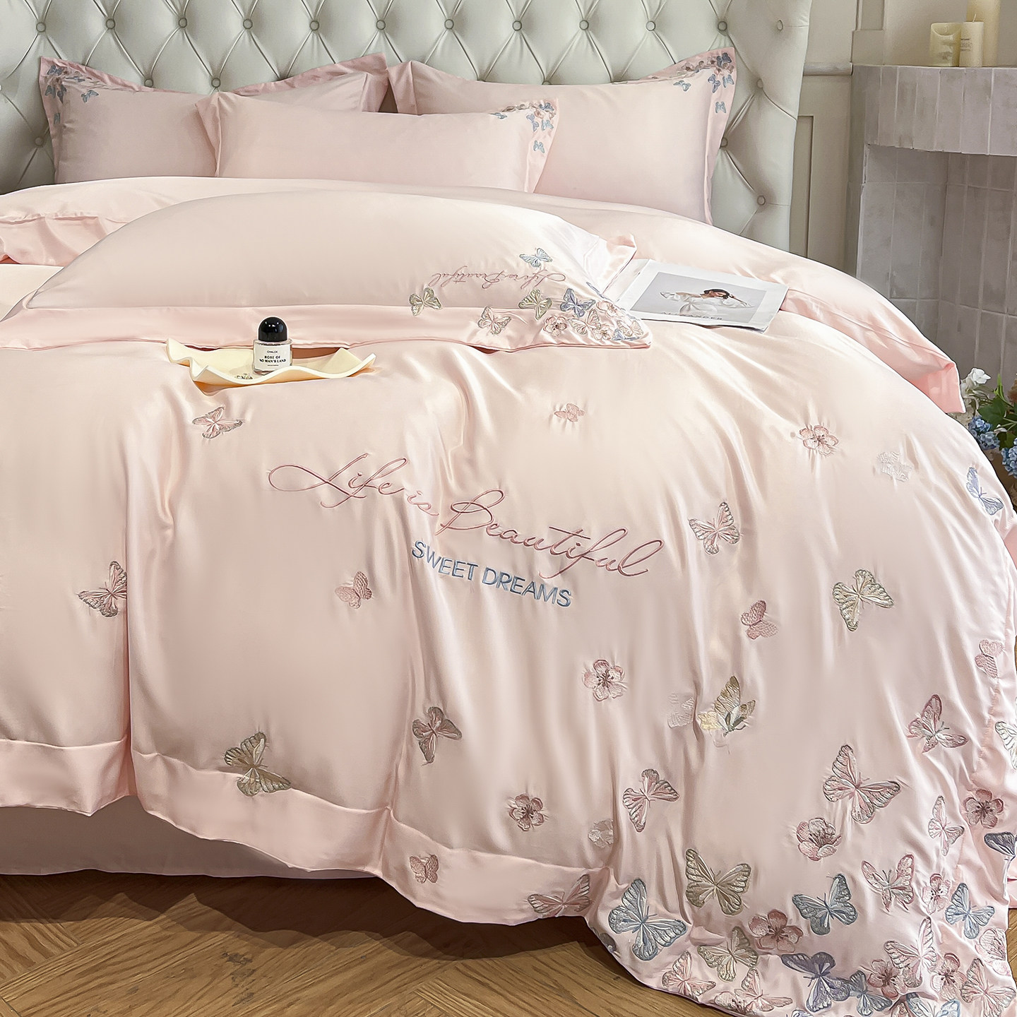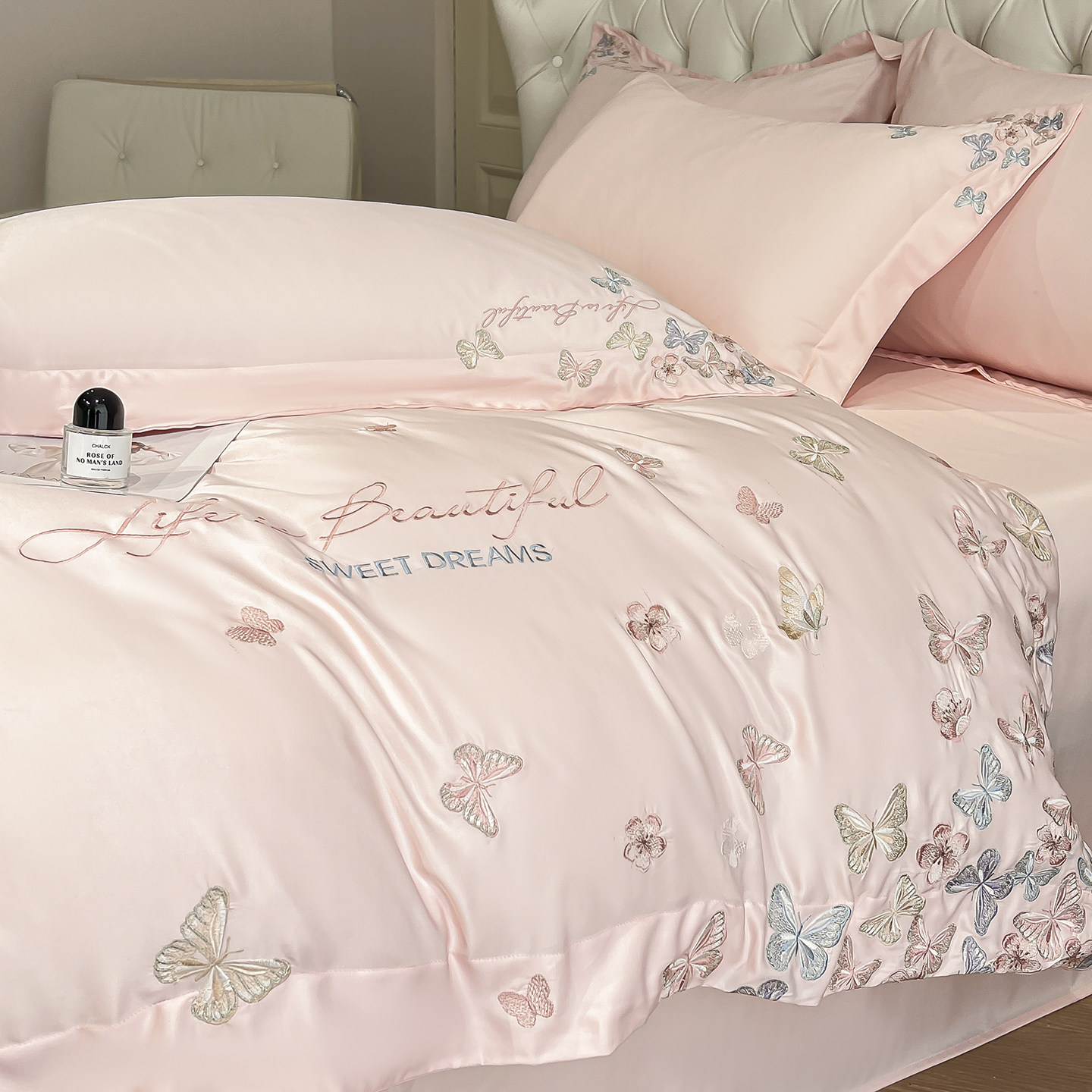 公主风莱赛尔天丝四件套少女心丝滑被套凉感床单冰丝裸睡床上用品