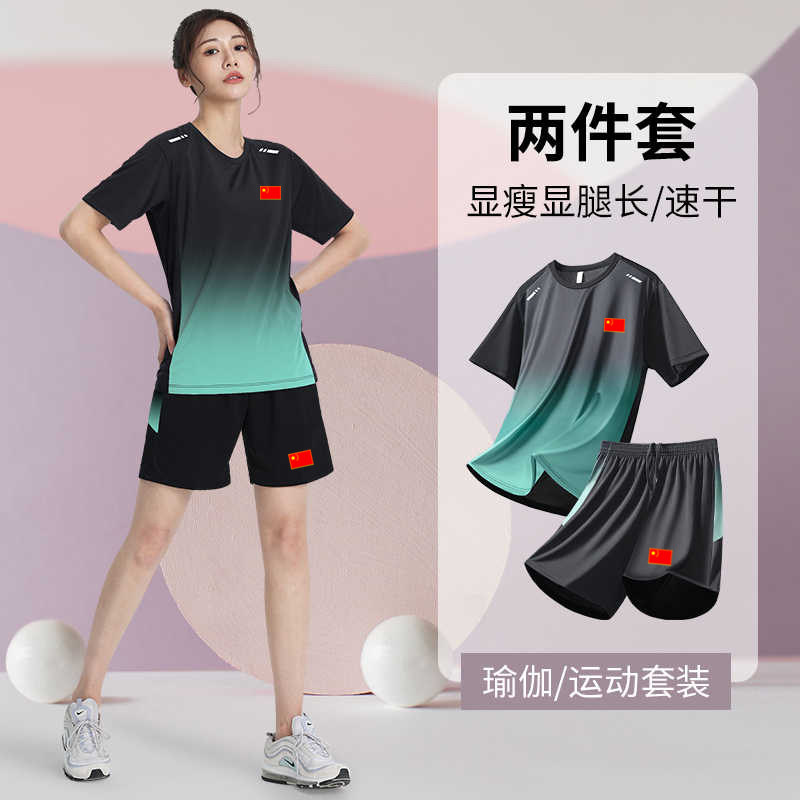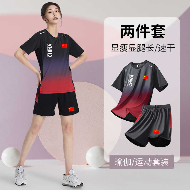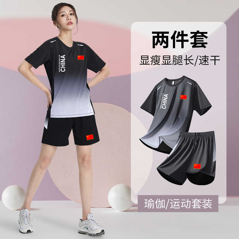 国家队瑜伽健身运动套装男女夏季速干中国体育生田径训练短裤短袖