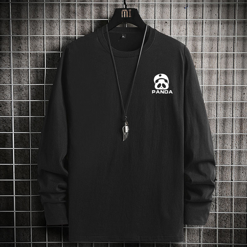 纯棉长袖t恤男生春秋季港风薄款圆领青少年学生帅气加肥加大体恤