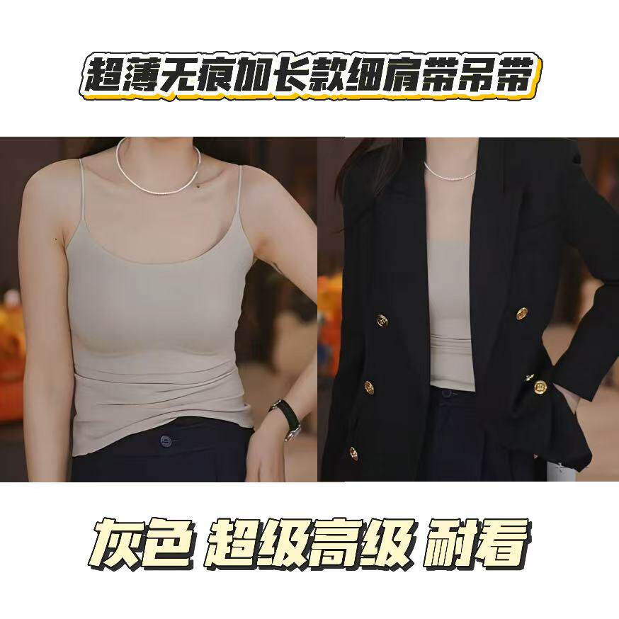 【杰哥&艾玛娇】 杰哥芳香美背--春夏季超薄无痕加长款细肩带吊带