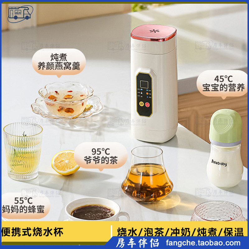 [房车伴侣]便携式电热水杯304内胆650ML电烧水壶400瓦小功率炖煮