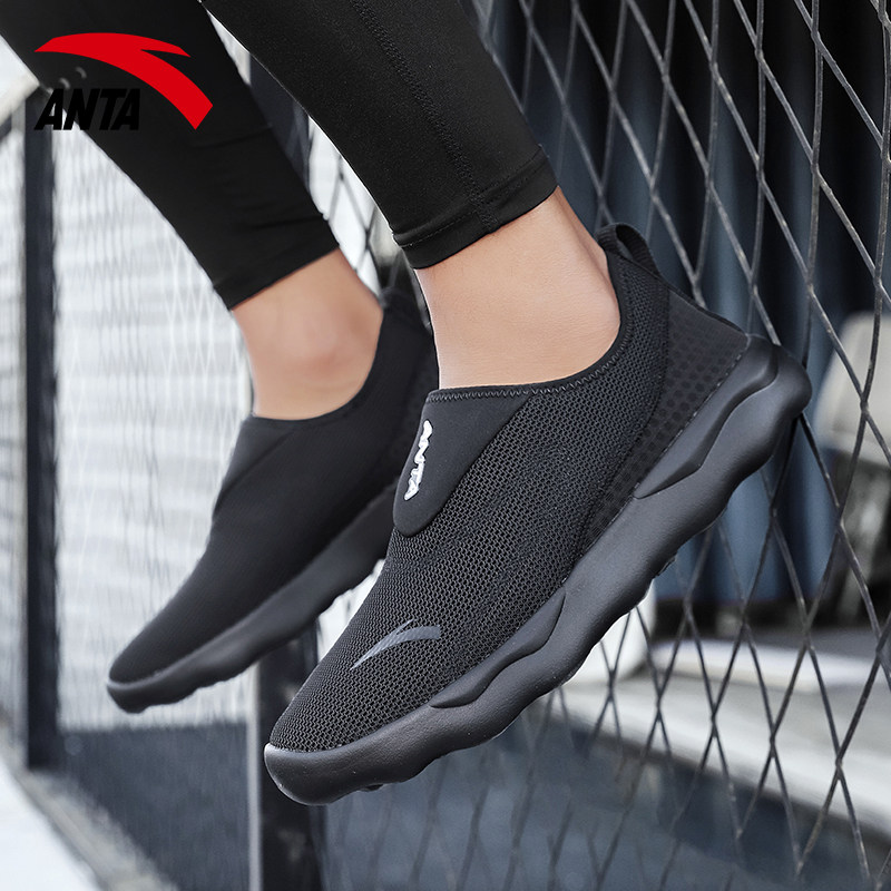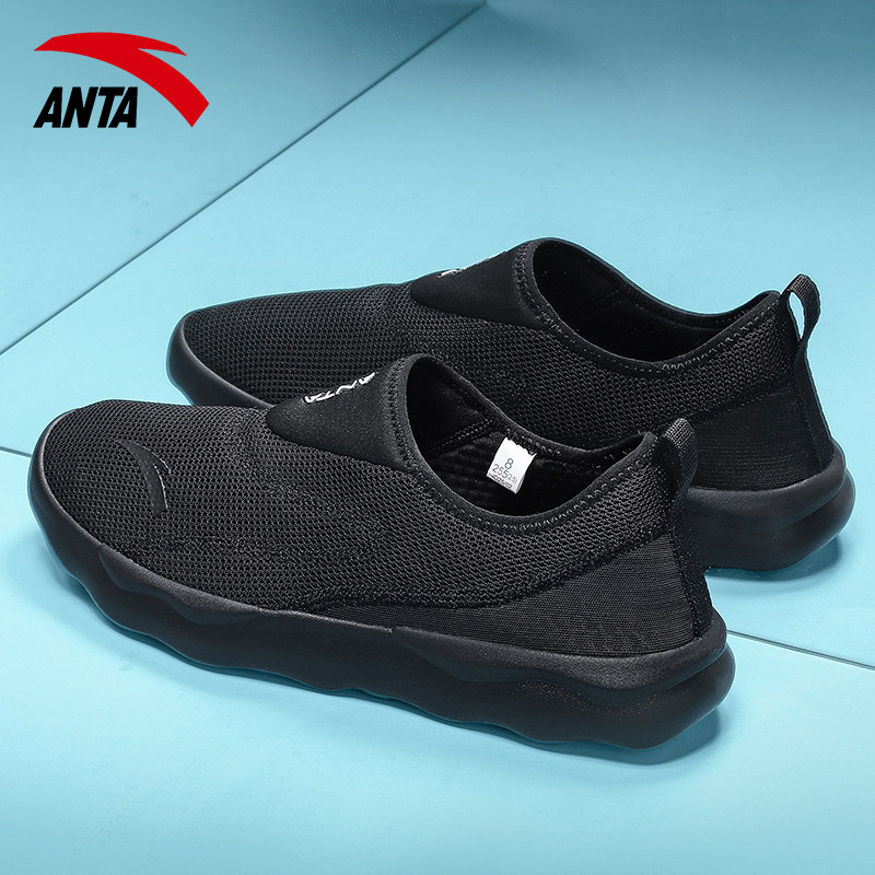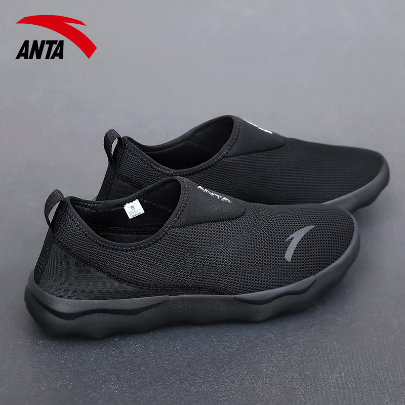 安踏男鞋休闲鞋一脚蹬懒人鞋网眼透气鞋子网面鞋官方旗舰运动鞋男