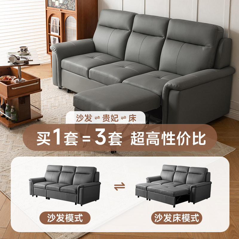 高端真皮多功能沙发床一体两用小户型双人伸缩床三人位带贵妃实木