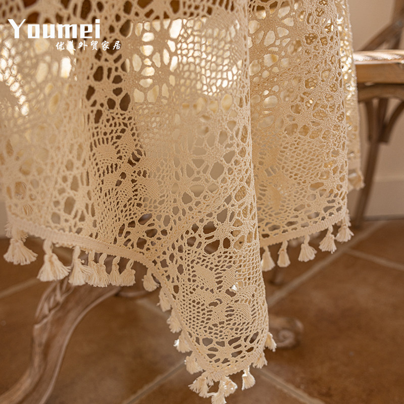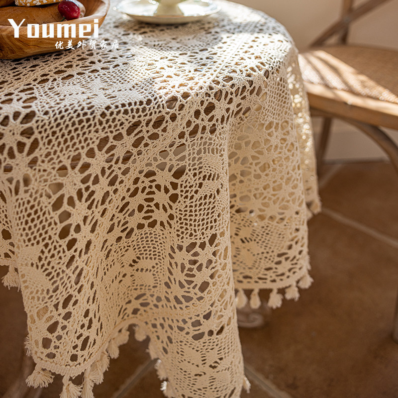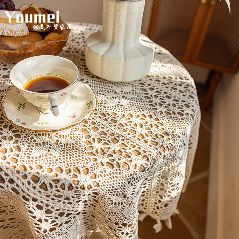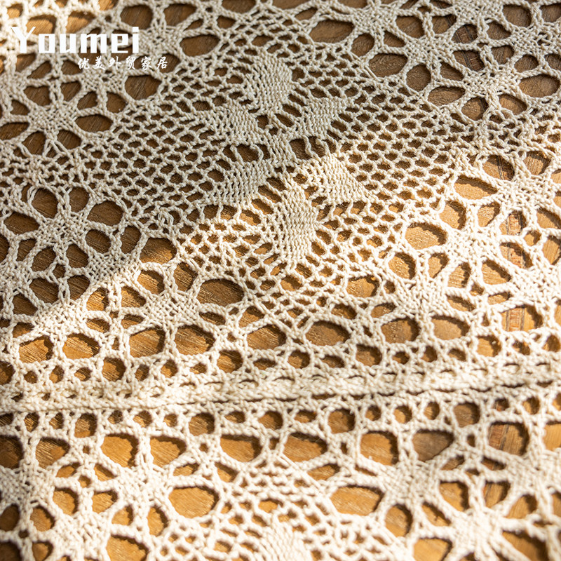 ins风纯棉桌布餐垫钩针蕾丝盖布简约田园台布拍摄背景布防尘道具