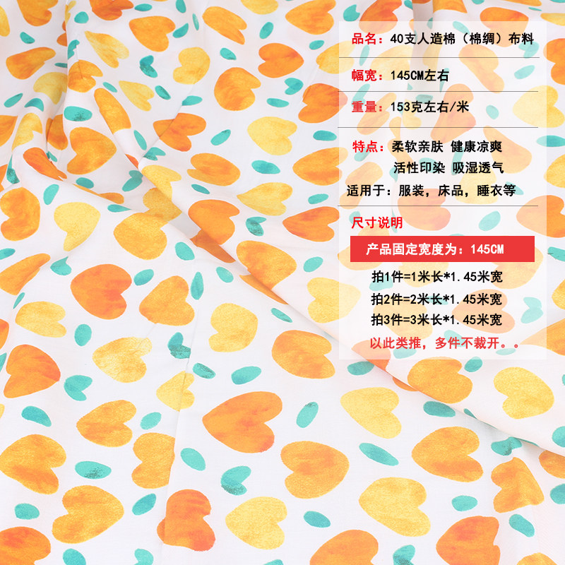 2026人造棉印花面料宝宝睡衣绵绸碎花连衣裙卡通床单棉绸府绸布料