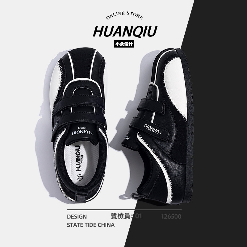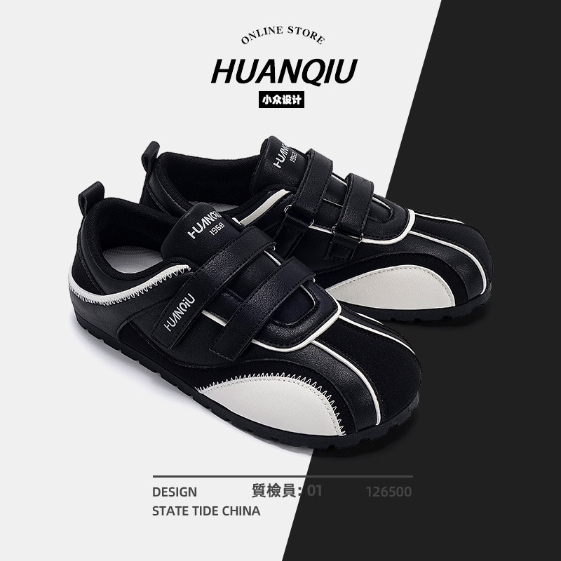 环球黑色德训鞋女款2025新款秋季百搭魔术贴板鞋休闲运动平底鞋子
