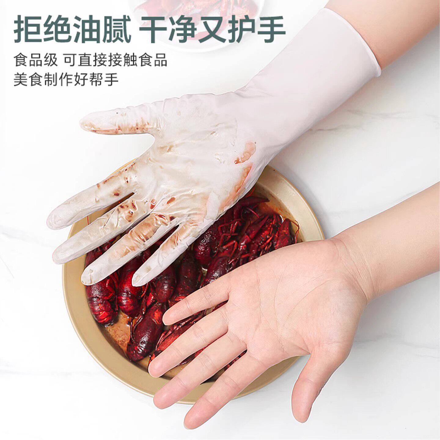 丁腈手套加厚耐磨洗碗加长耐用橡胶劳保家务女防滑食品级年货节