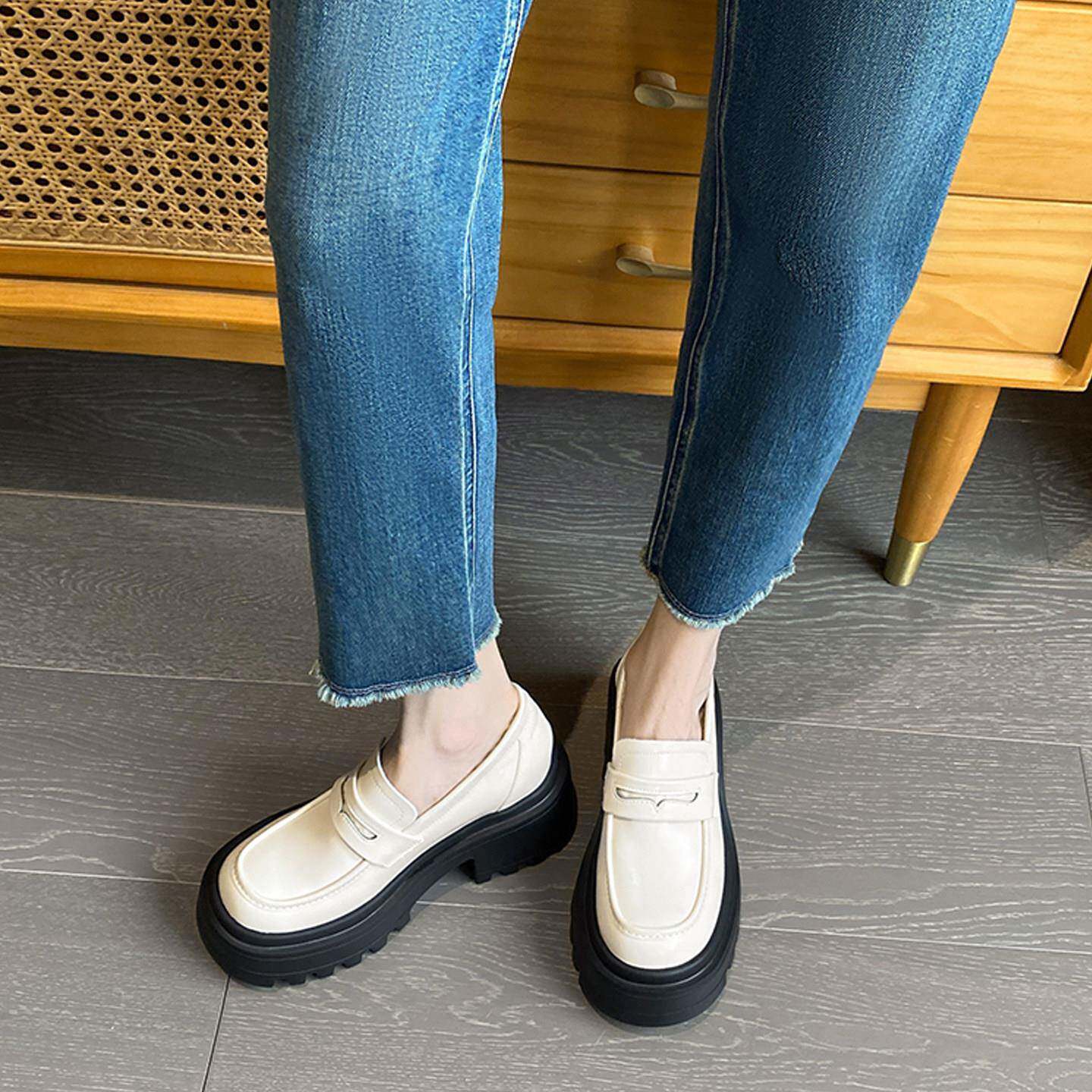 香港内增高真皮松糕厚底乐福鞋2026新款英伦风黑色jk小皮鞋女单鞋