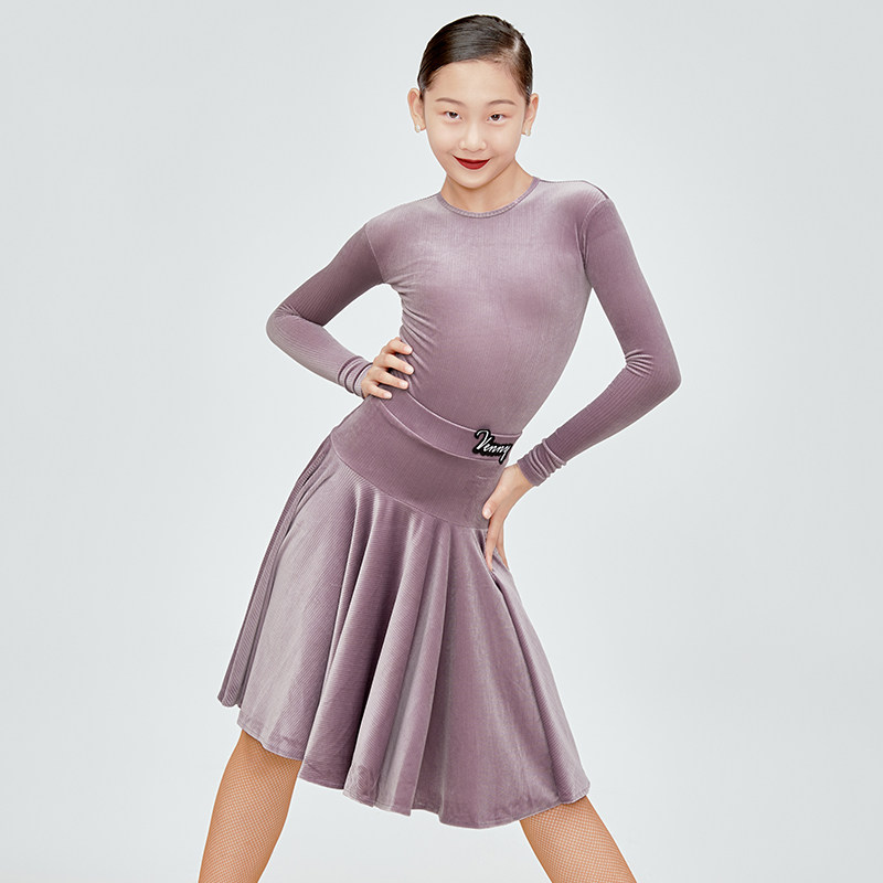 薇妮拉丁舞比赛服儿童丝绒新款无鱼骨女童舞裙国标舞蹈规定服套装