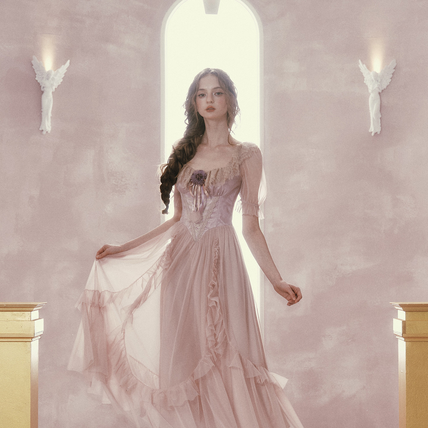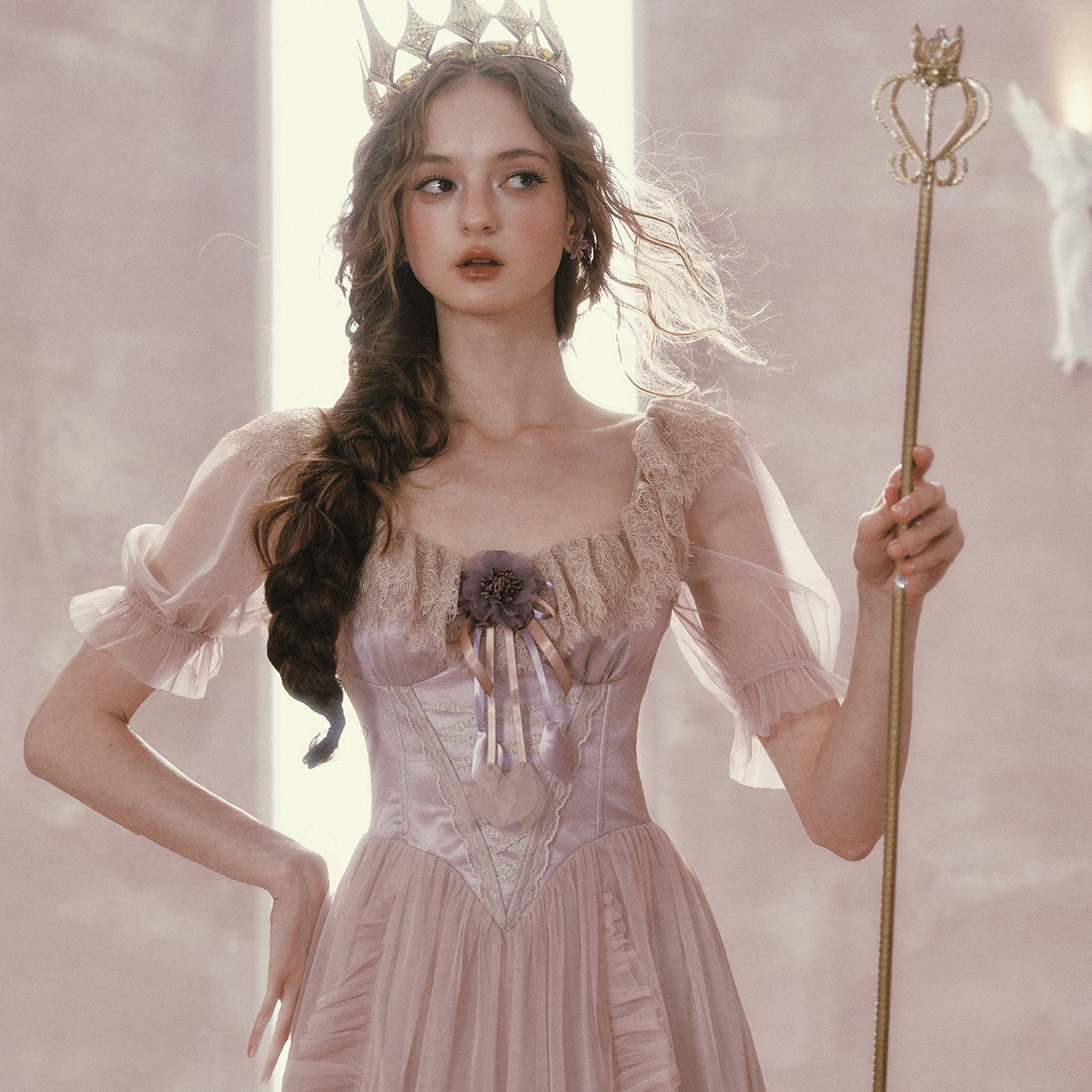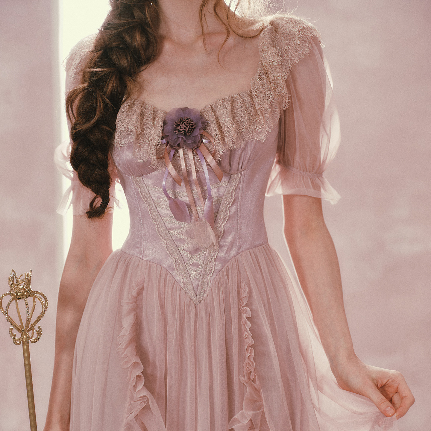 LaceMade 紫鸢公主 法式维多利亚风网纱裙紫色鱼骨连衣裙春夏长款