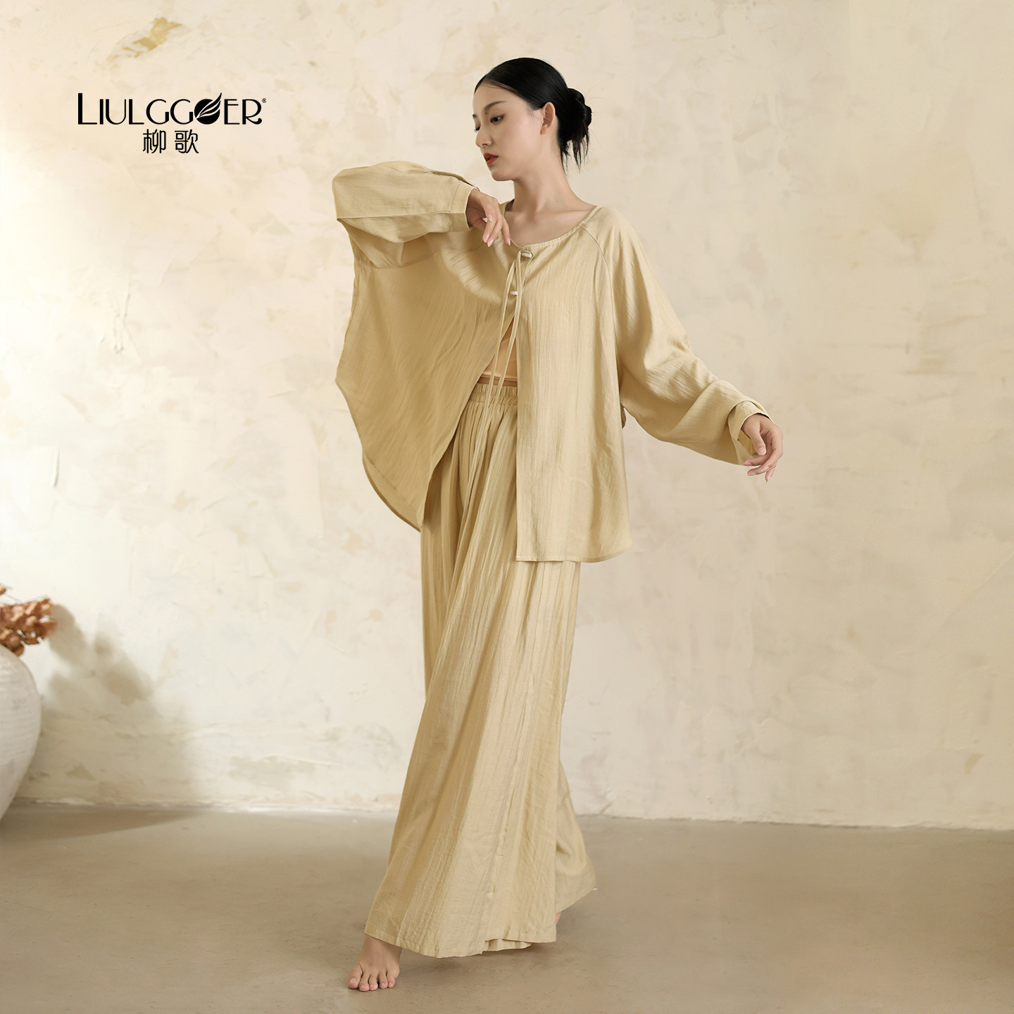 柳歌古典舞蹈服成人教师飘逸长袖衬衫现代中国舞形体练功两件套装