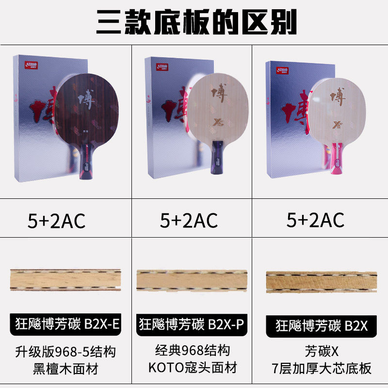 红双喜狂飙博B2X博芳碳狂飚博纯木7层方博碳素乒乓球底板球拍正品