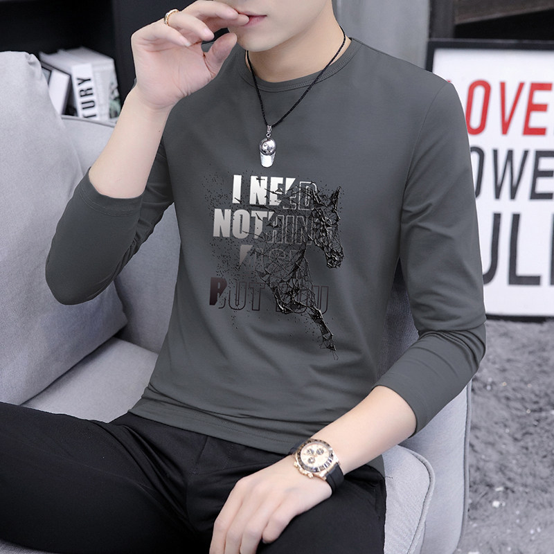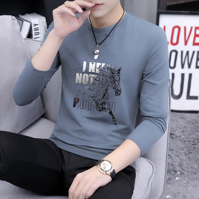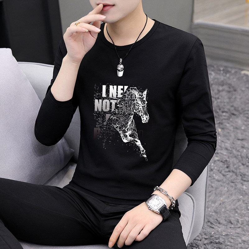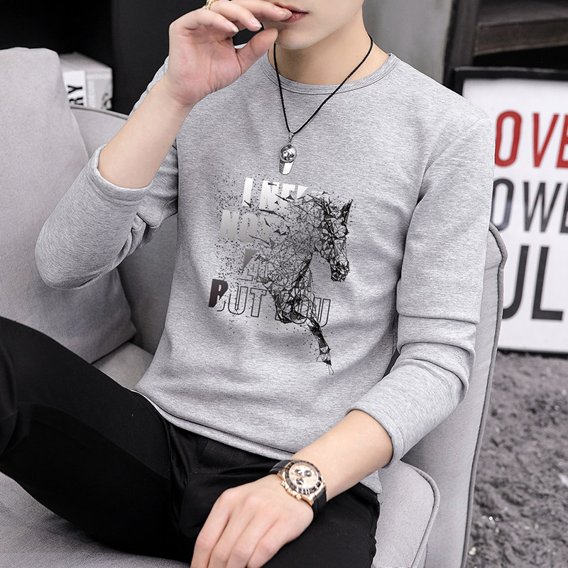 帅气秋衣男款t恤薄款高品质棉长袖上衣韩版宽松青年百搭修身体恤
