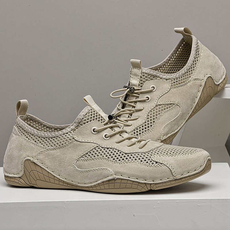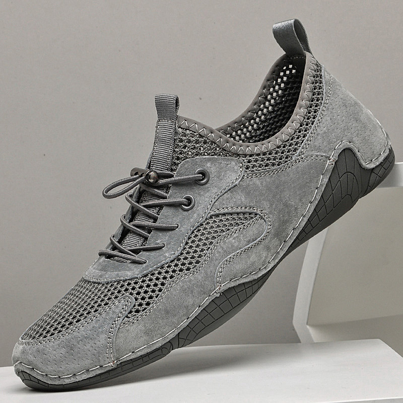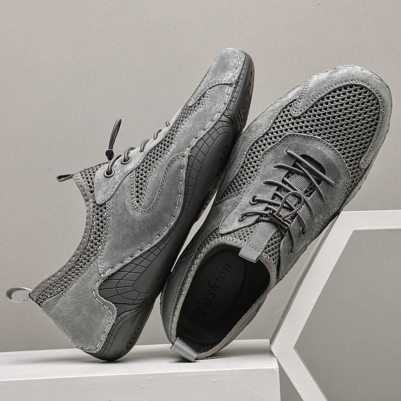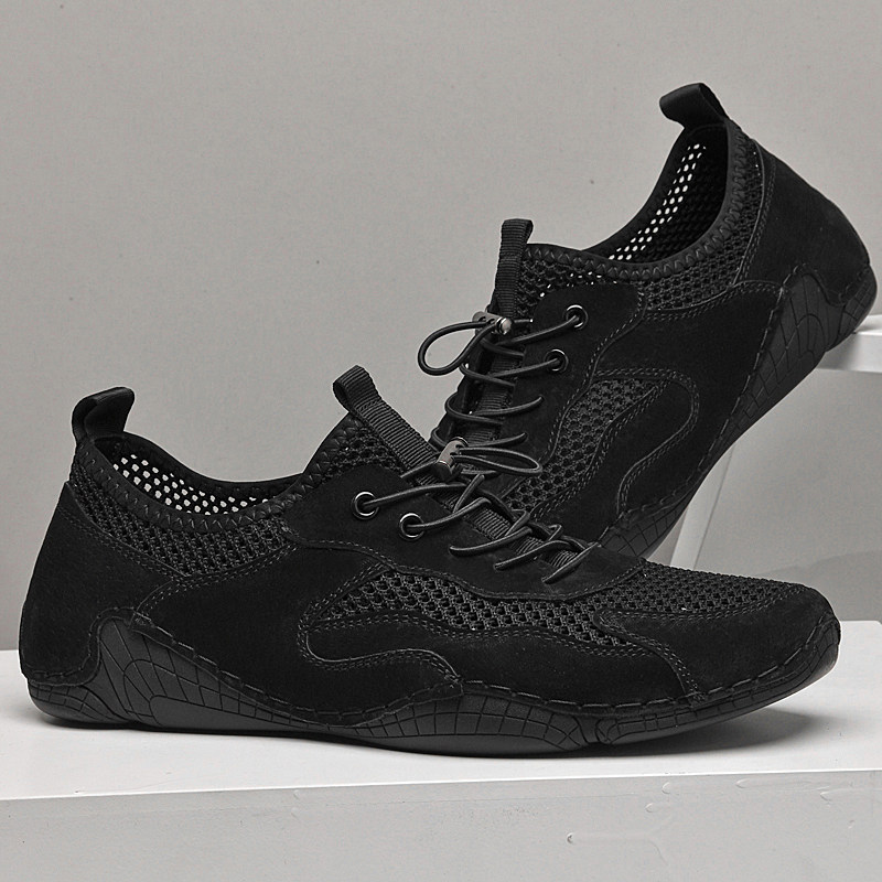 男鞋夏季新款真皮网面鞋透气网眼镂空休闲鞋一脚蹬百搭潮平底单鞋