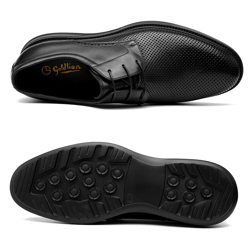 金利来男鞋夏季真皮系带商务休闲平底网眼镂空冲孔透气男士皮凉鞋