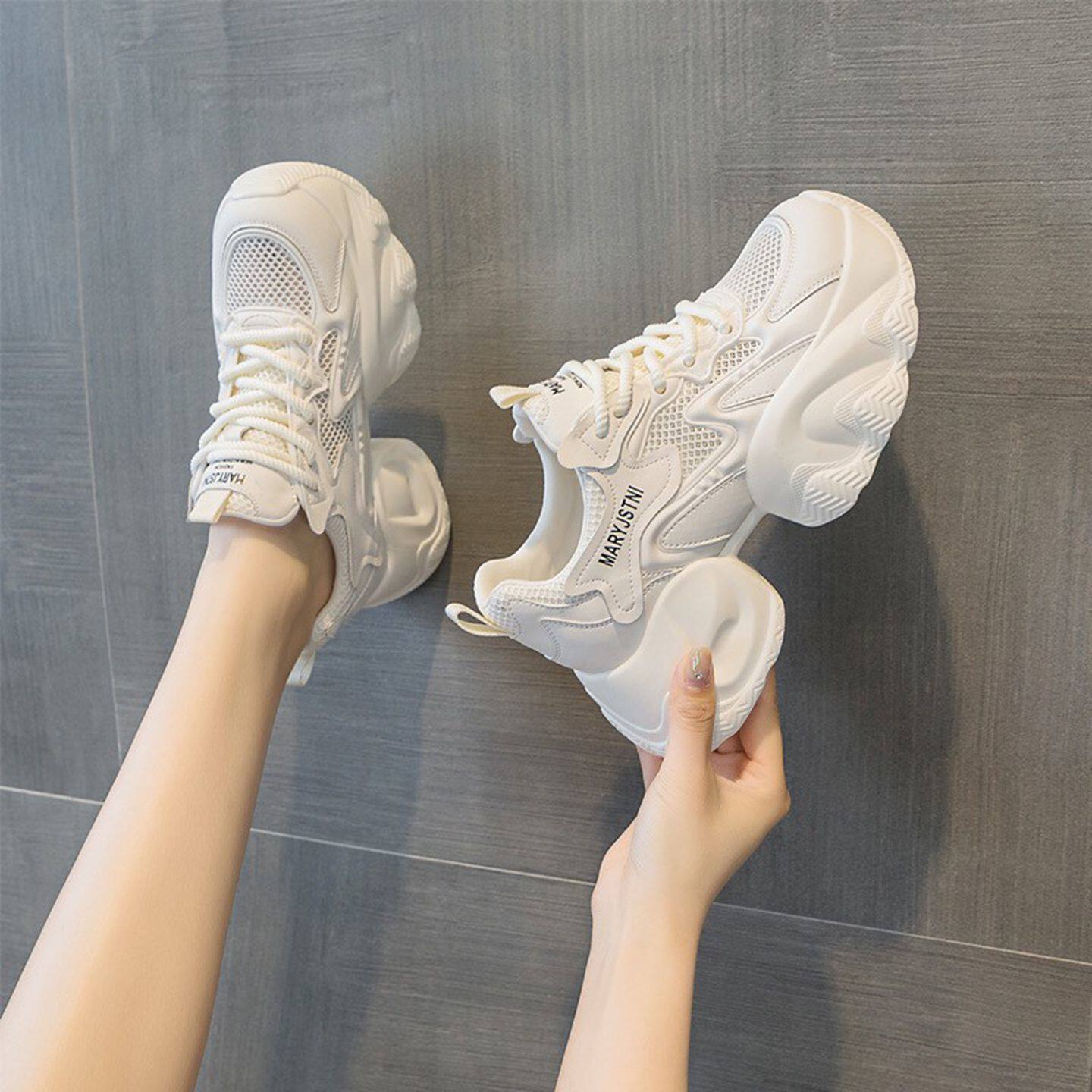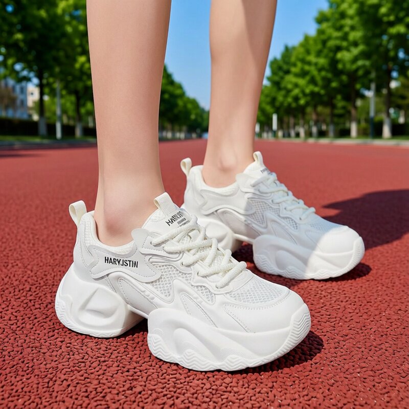8cm内增高老爹鞋女款2026新款夏季网面透气小个子厚底运动小白鞋