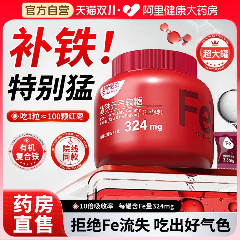 富铁软糖补铁红枣元气孕妇补血贫血女性儿童口服补气血铁剂补充剂