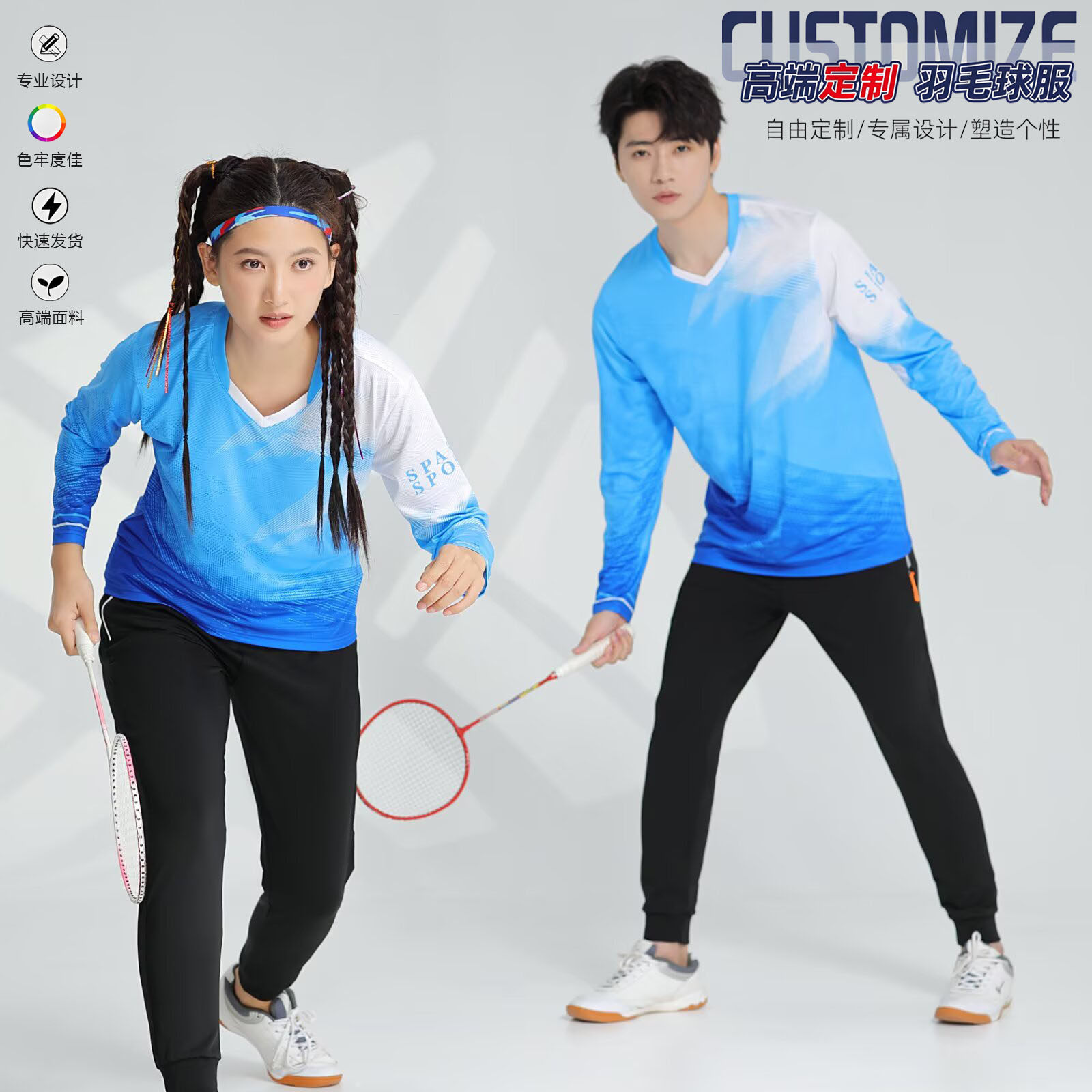 长袖羽毛球服套装男女速干长袖定制比赛训练运动服排球服团队印字
