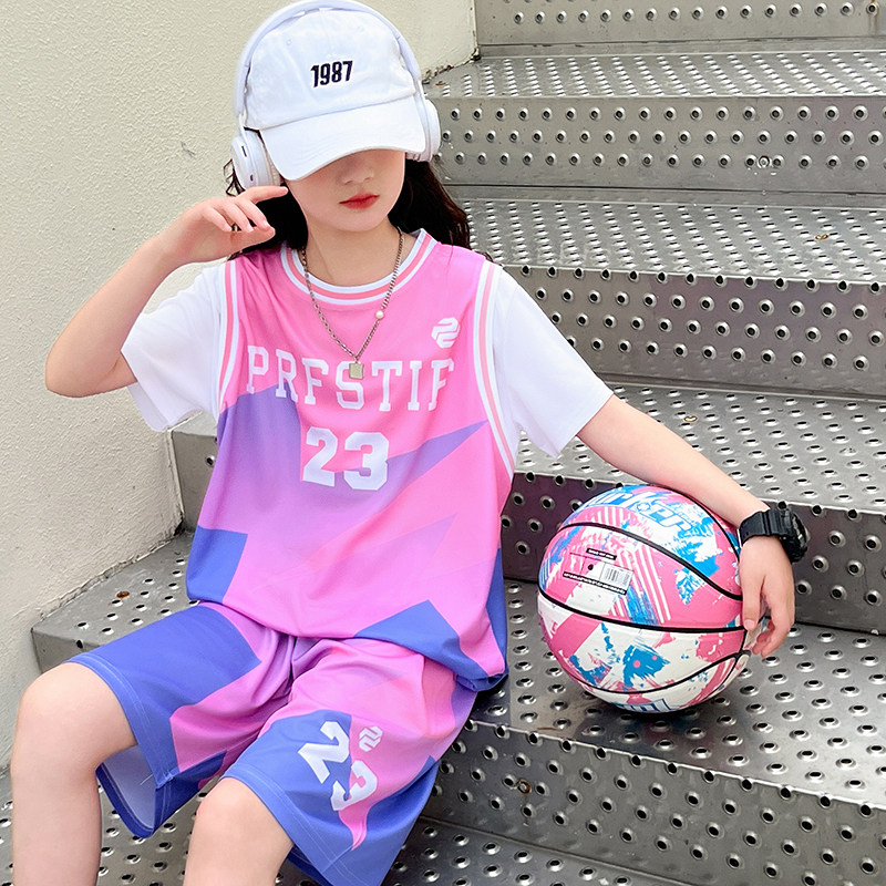 女童篮球服夏季儿童粉色23号詹姆斯球衣速干运动套装假两件短袖潮