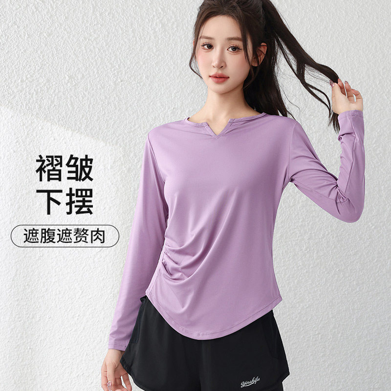 显瘦大码运动上衣女2025新款胖mm跑步健身瑜伽服t恤长袖宽松200斤
