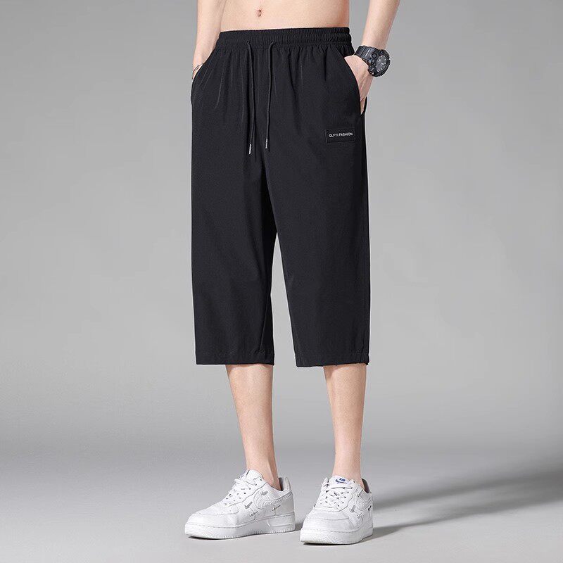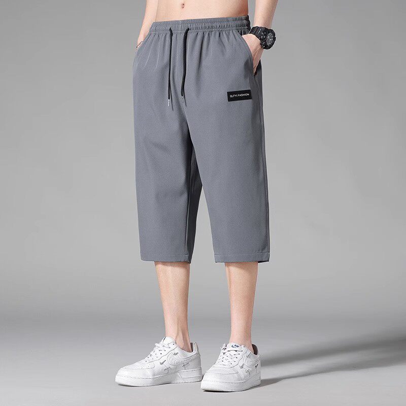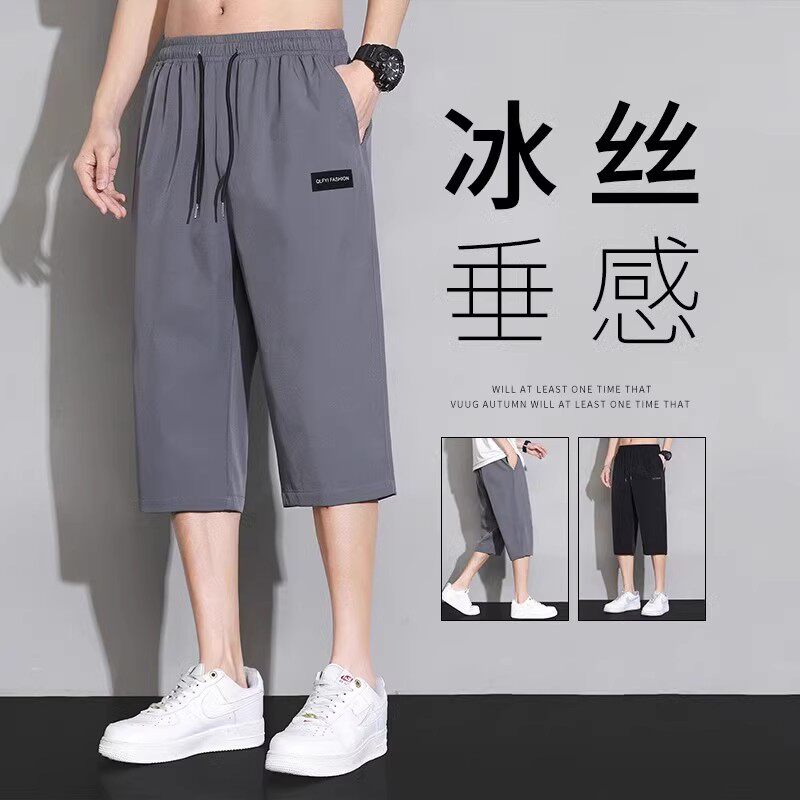 男士七分裤夏季冰丝薄款潮牌宽松过膝运动中裤子夏天男款休闲短裤