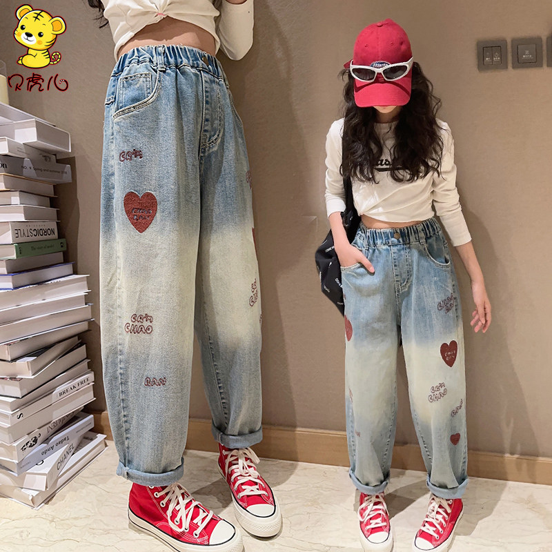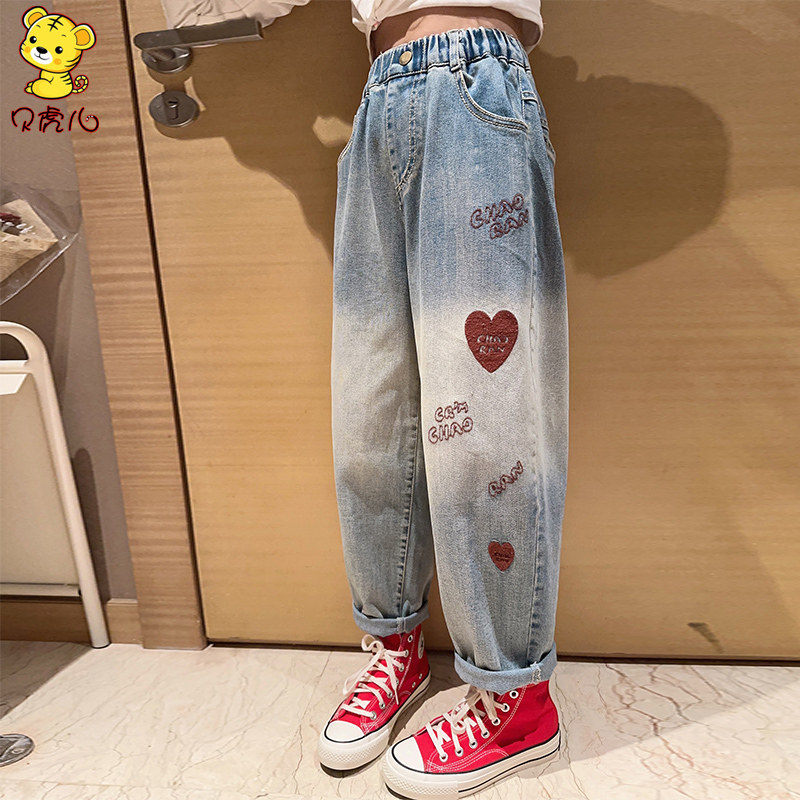 女童裤子春秋外穿2026新款中大童休闲宽松老爹女孩春季儿童牛仔裤