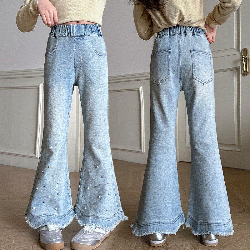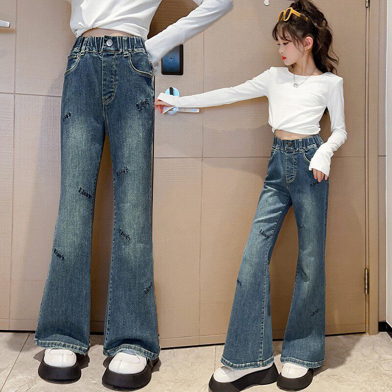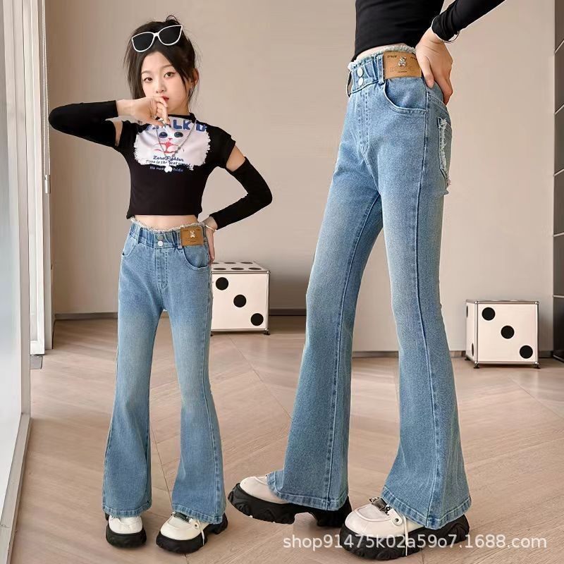 女童喇叭裤春秋装2026新款外穿裤子时髦洋气中大童修身儿童牛仔裤