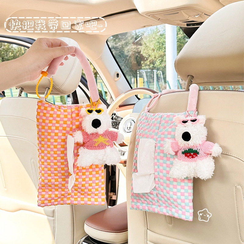 311线报网描述:车载纸巾盒高级感创意可爱女士纸巾挂袋
