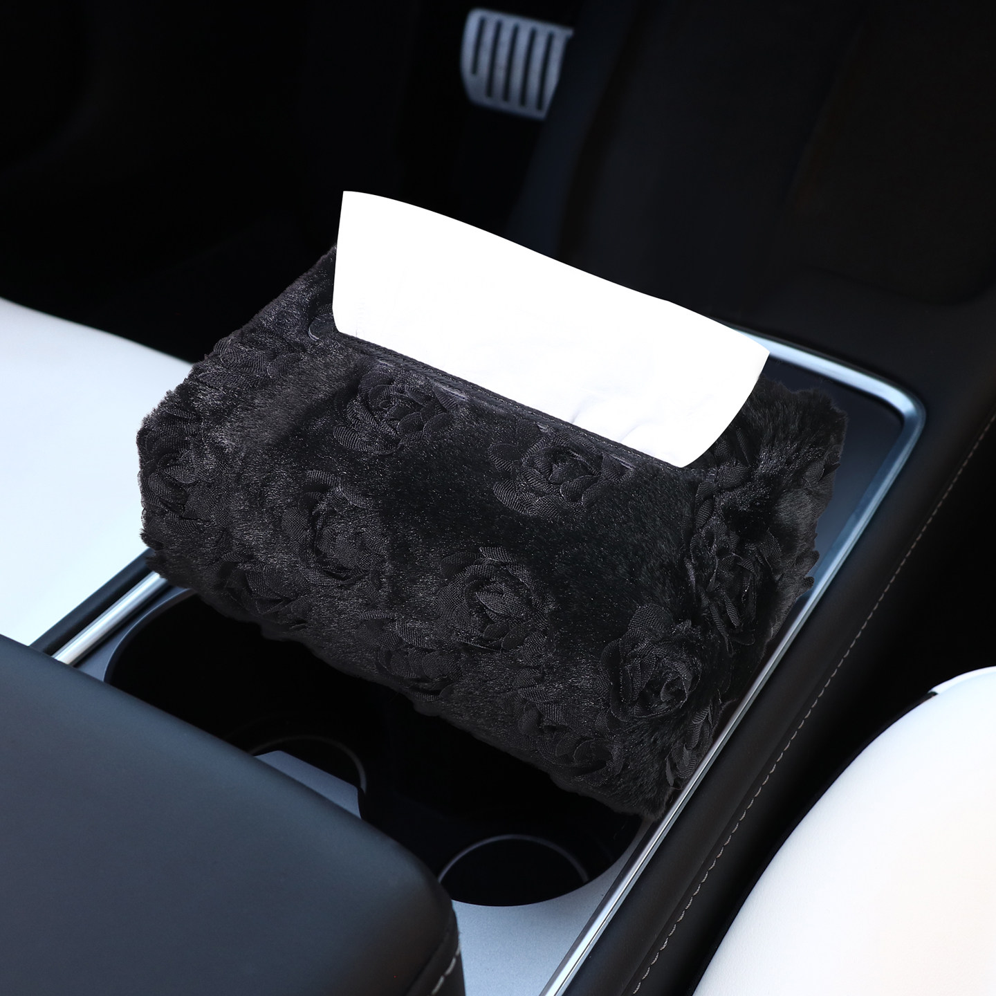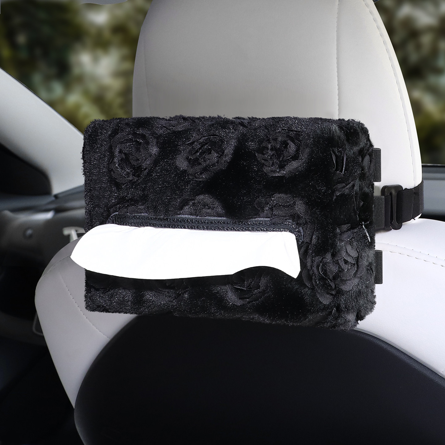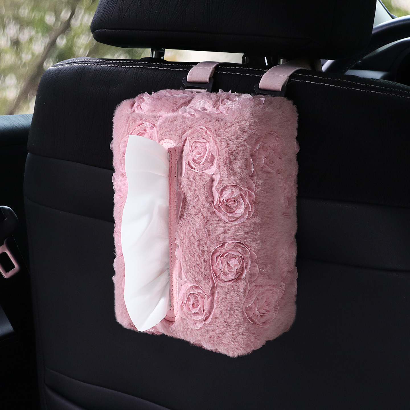 车载纸巾盒毛绒玫瑰高级感悬挂式车内抽纸盒秋冬款创意车用纸抽盒