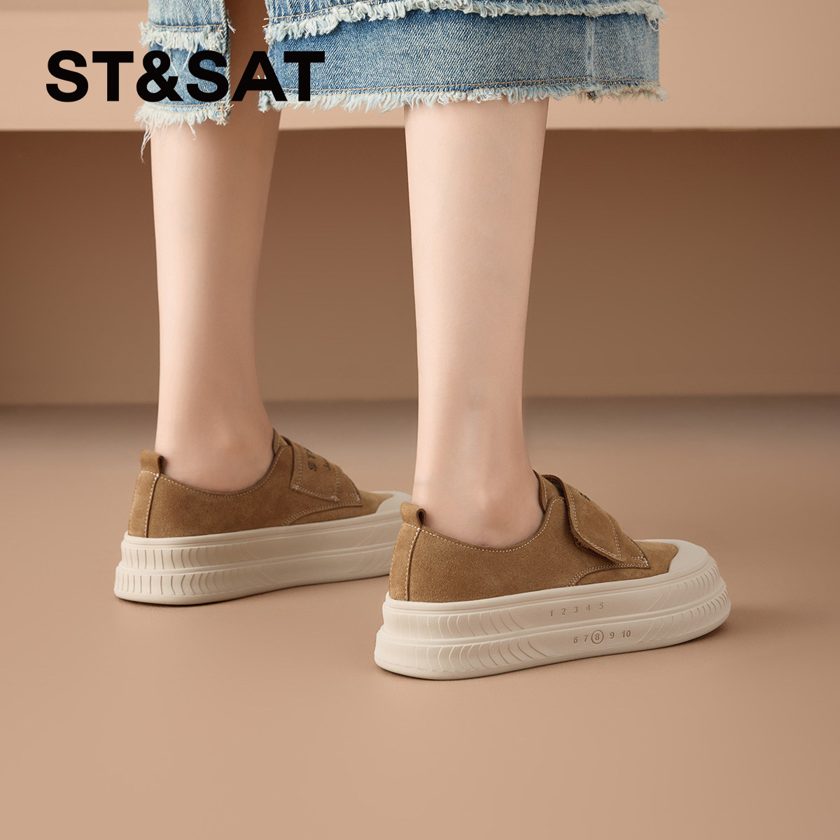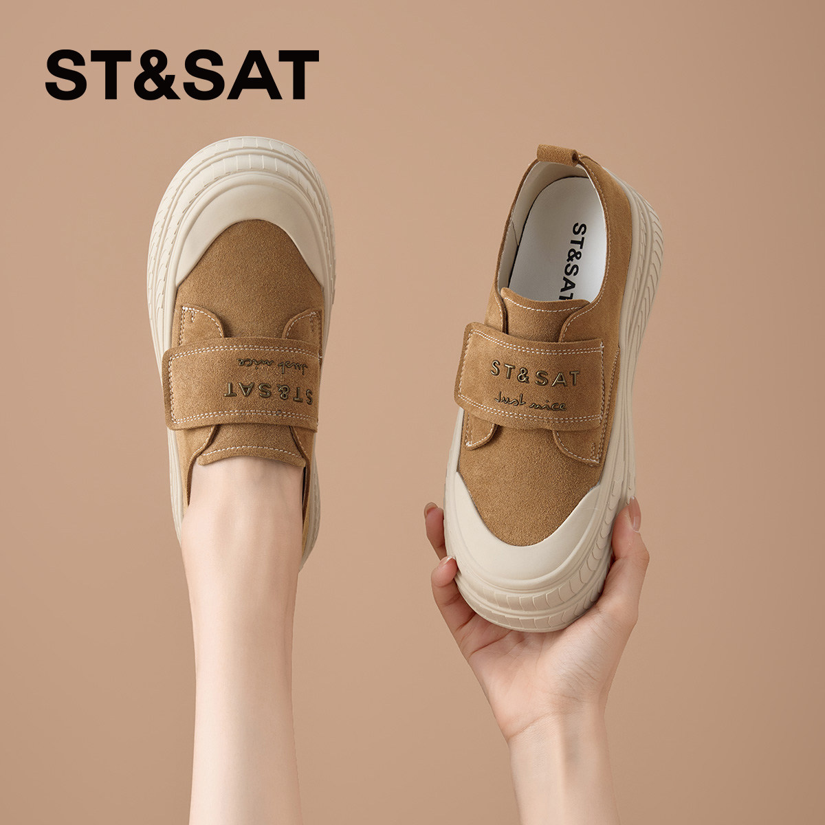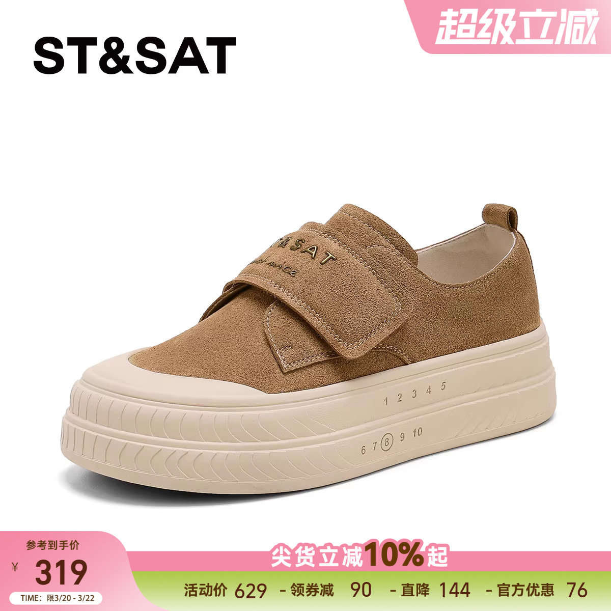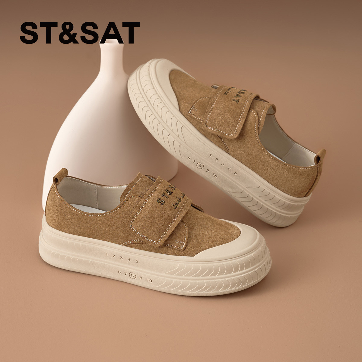 星期六复古厚底板鞋2026新款春季魔术贴舒适透气单鞋软底休闲女鞋