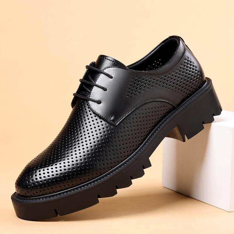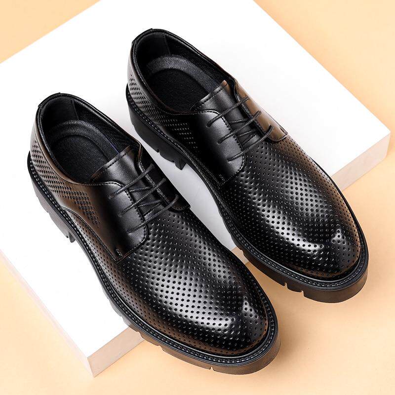 正货厚底增高男皮鞋内增高洞洞鞋男10cm夏季凉鞋厚底商务装男鞋透