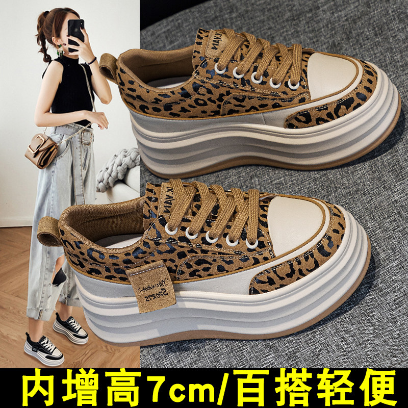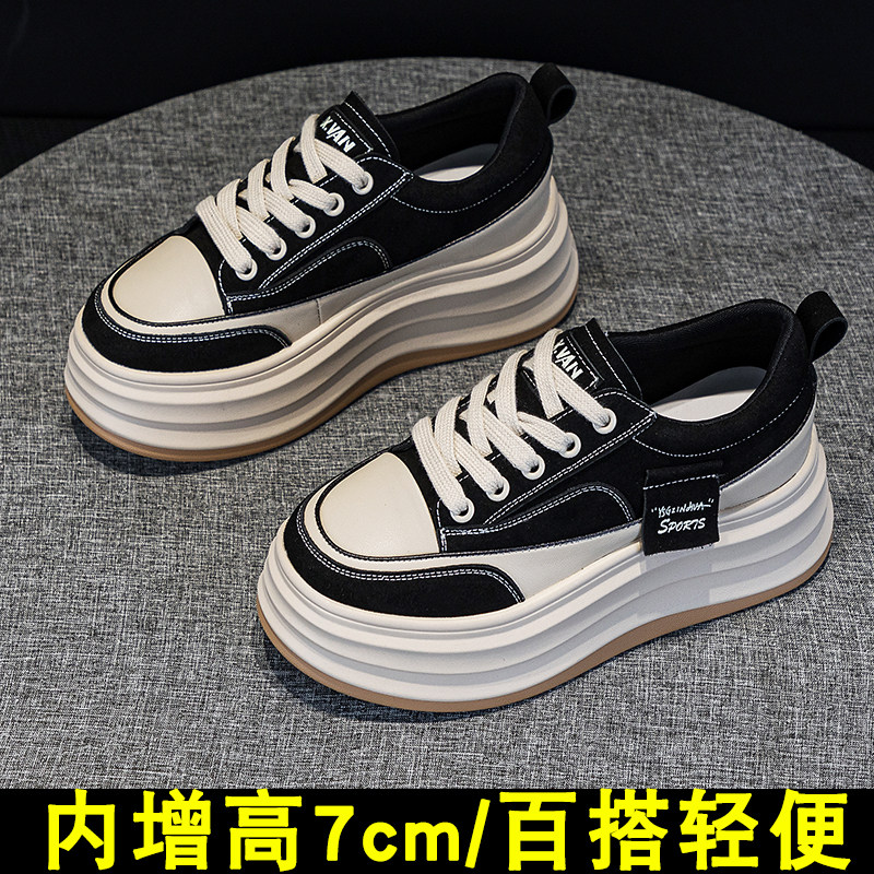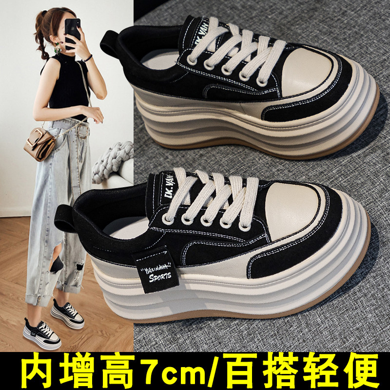 内增高女鞋202春季新款爆款小个子显高轻便7cm厚底板鞋小白鞋女
