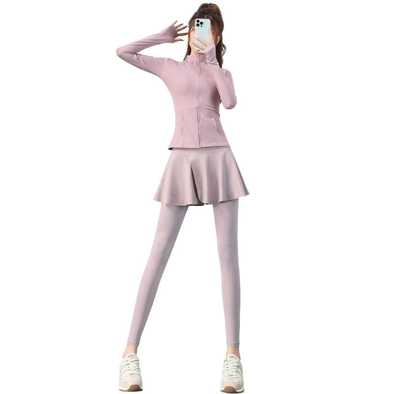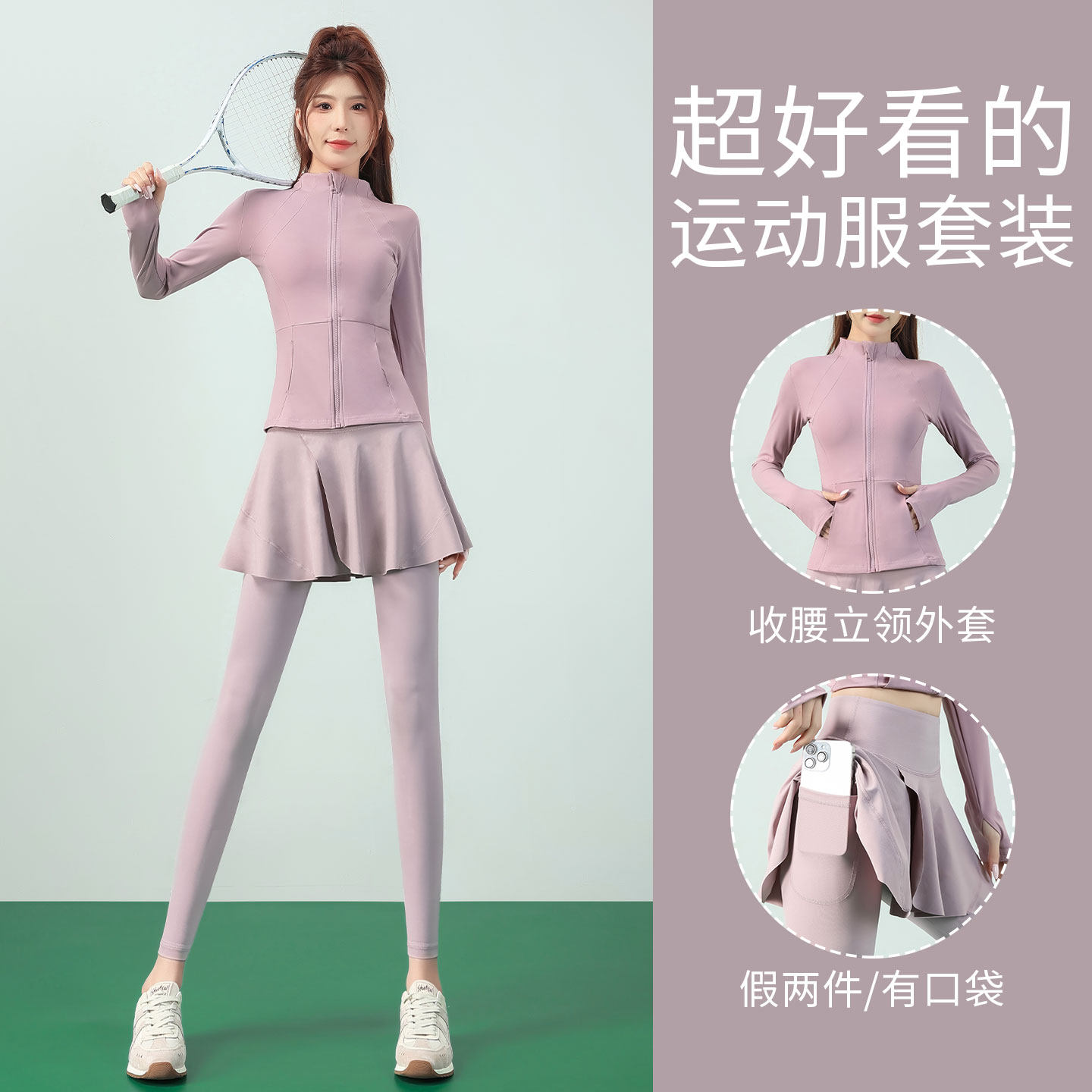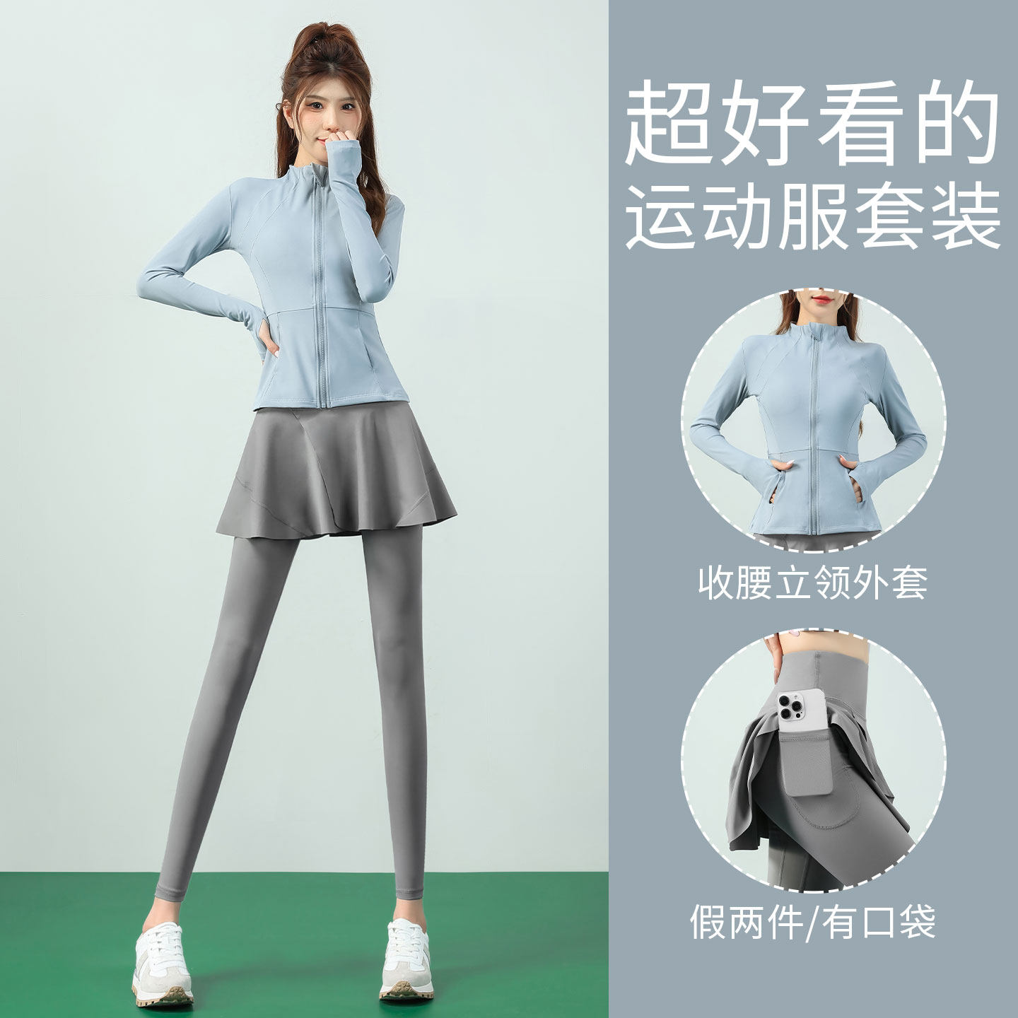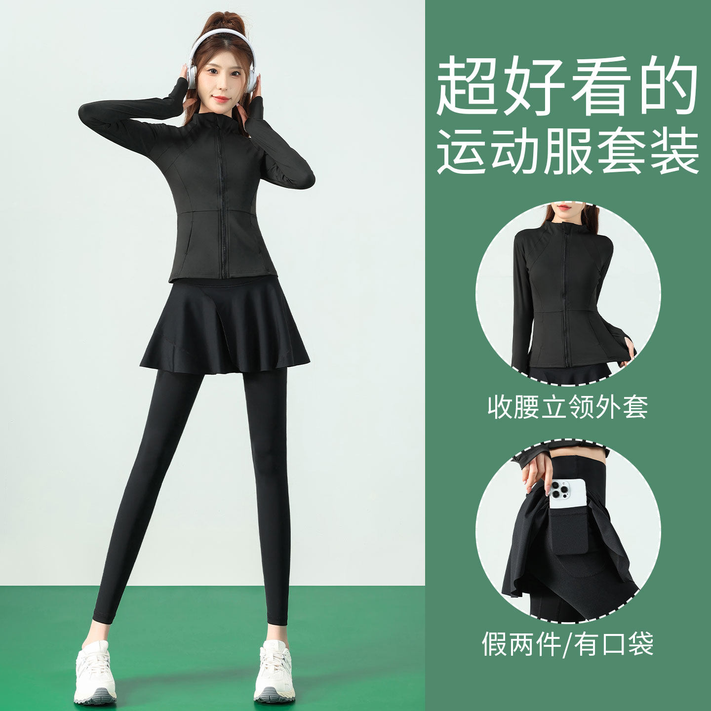 跑步运动套装女秋2025新款高级感瑜伽裤遮挡裙户外健身晨跑服裙裤