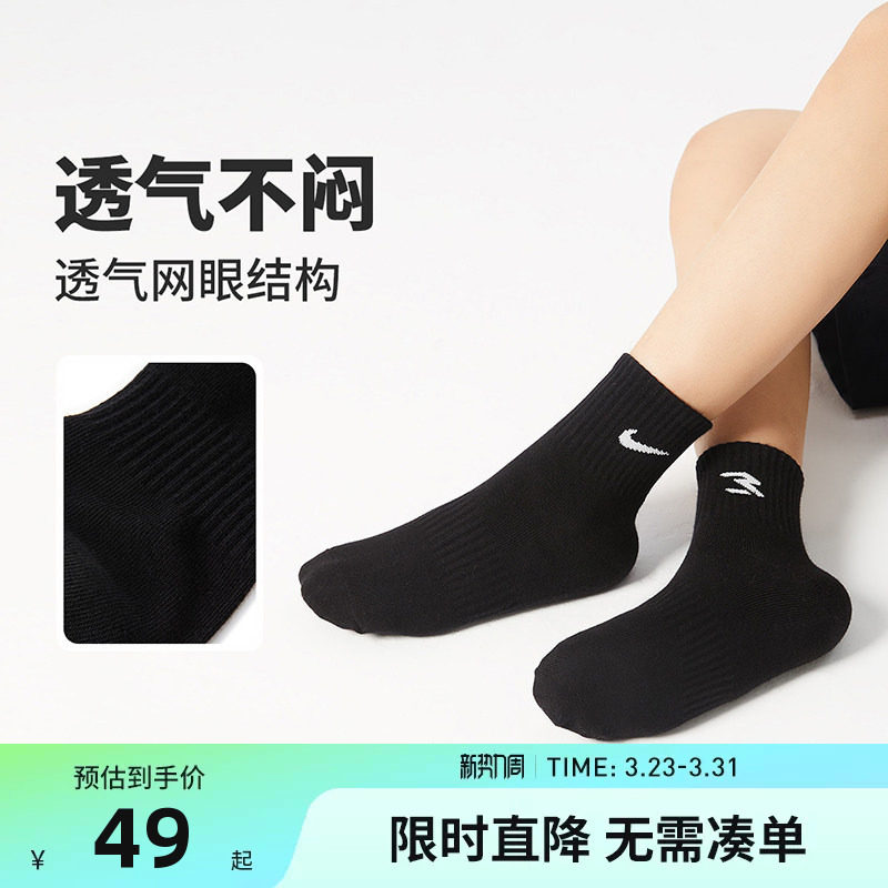 Nike 3brand袜子夏季薄款中筒袜男女童棉袜透气散热长袜3双装宝宝