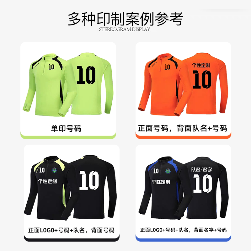长袖足球训练服套装秋冬男女儿童足球服球衣团购定制半拉链出场服