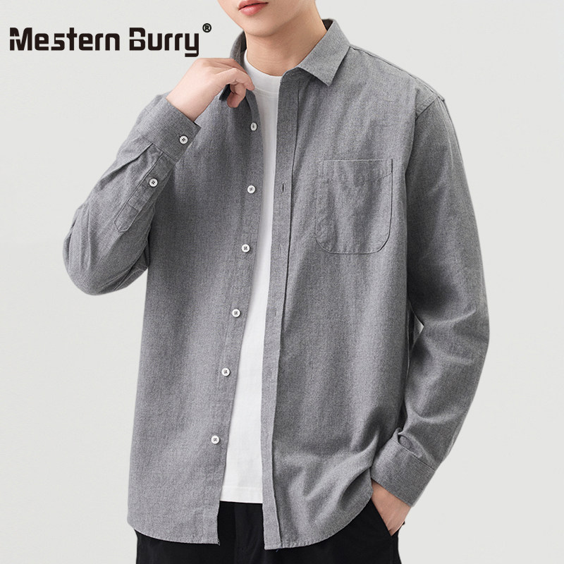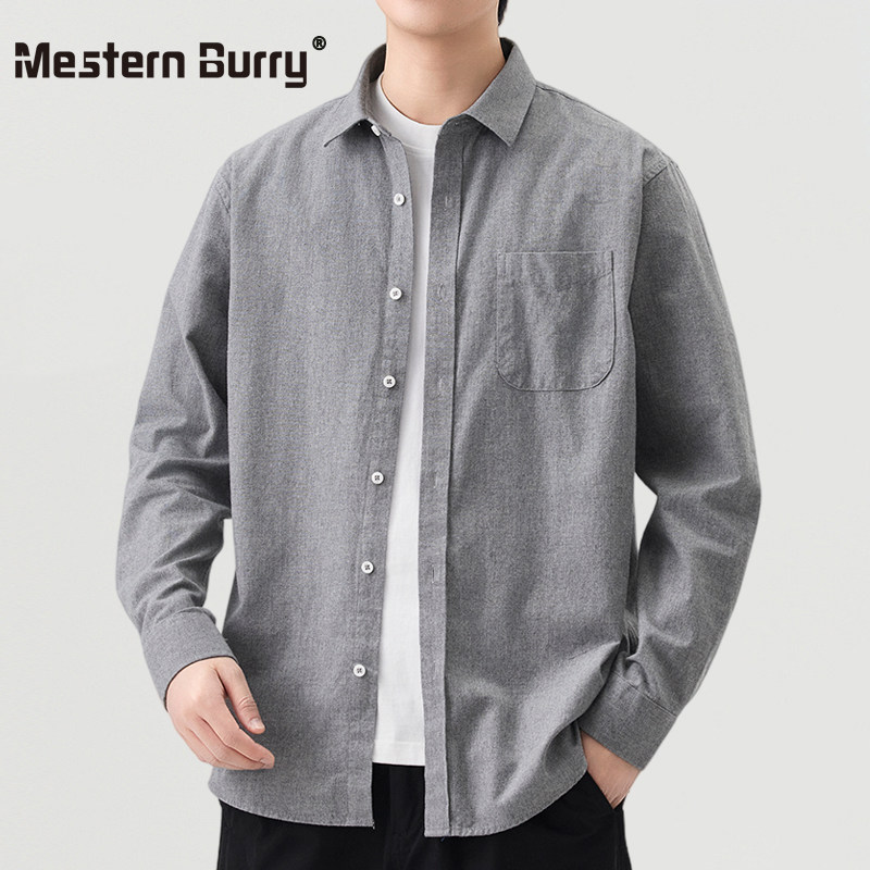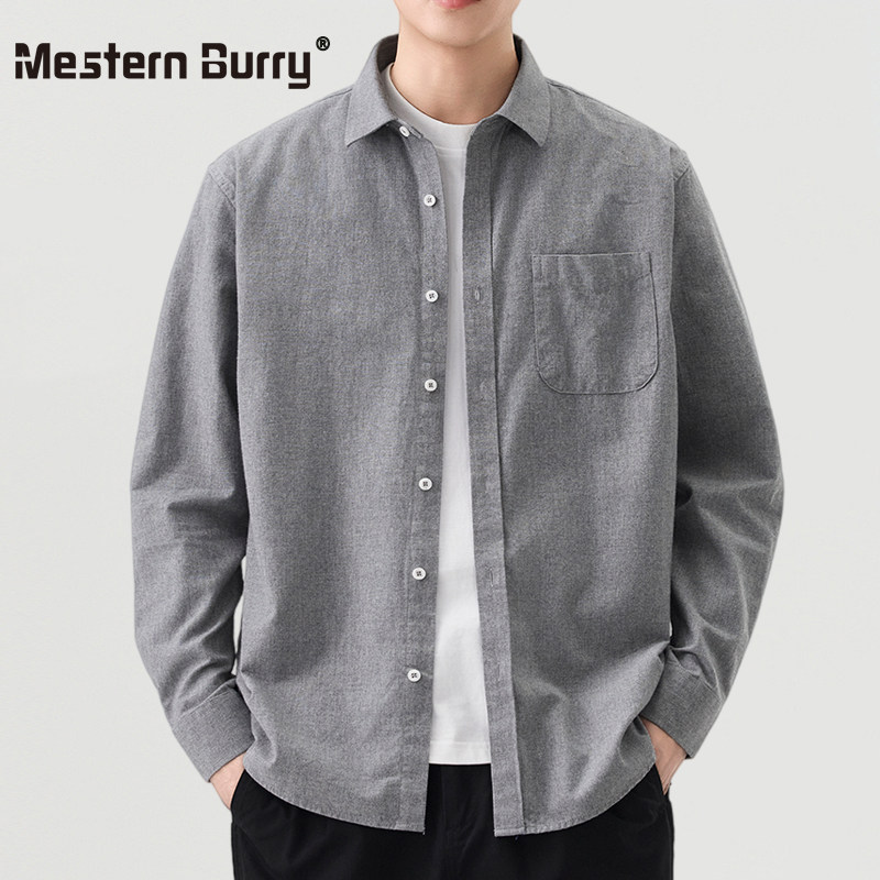 春季新款男士磨毛衬衣宽松休闲上衣男款纯棉长袖衬衫男装潮流外套
