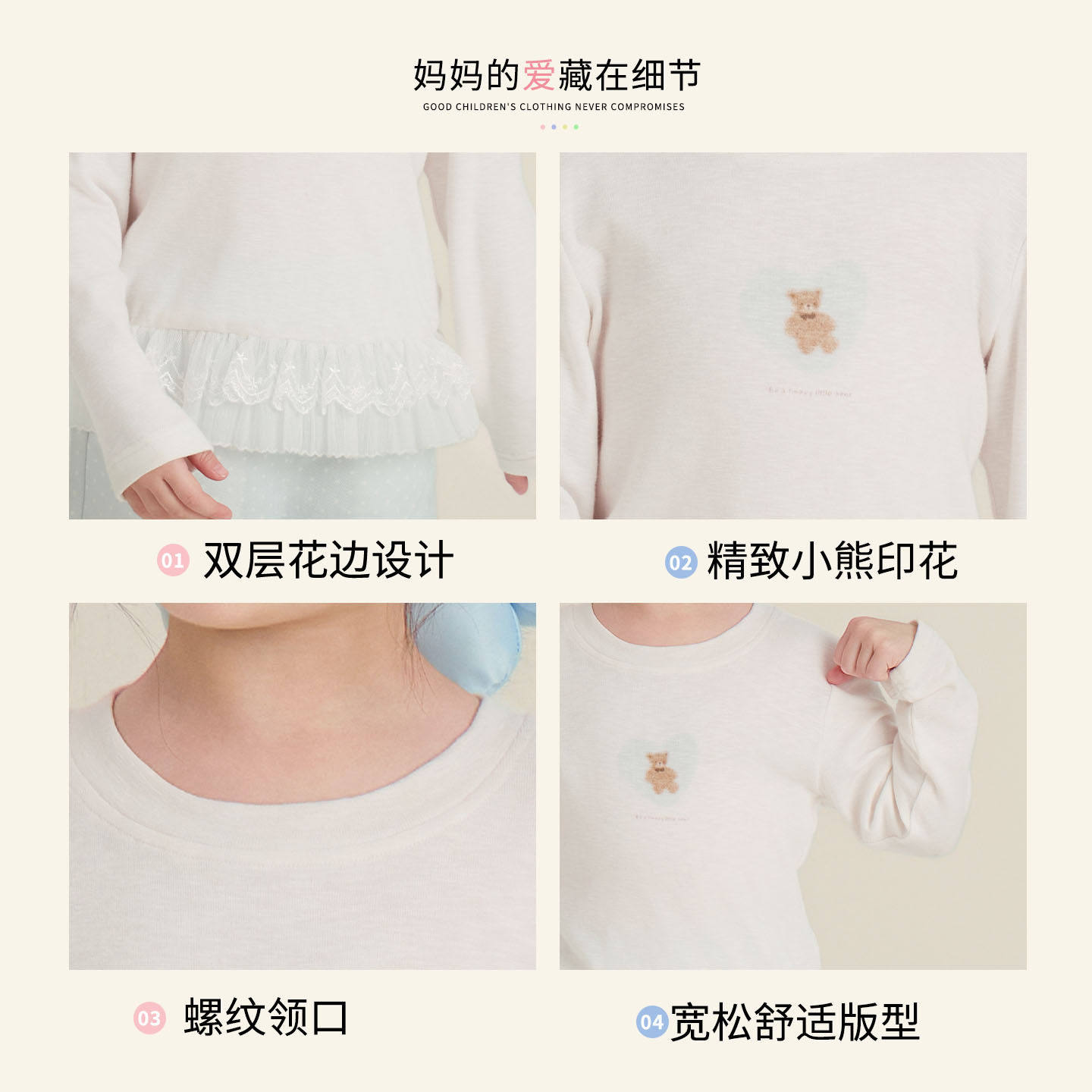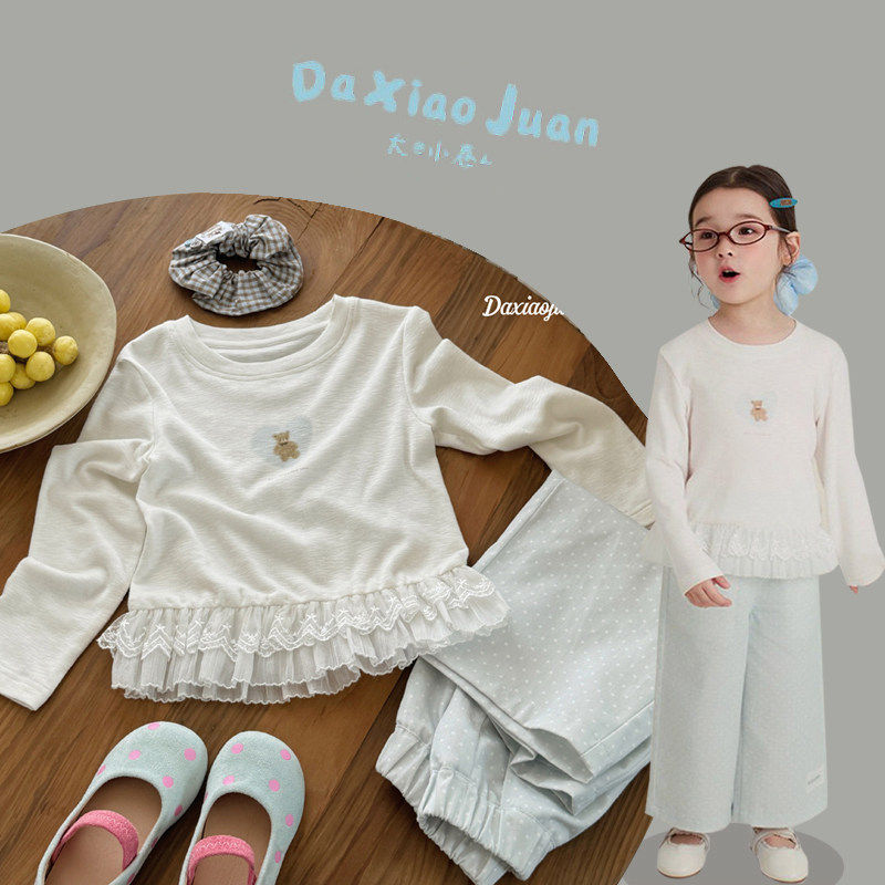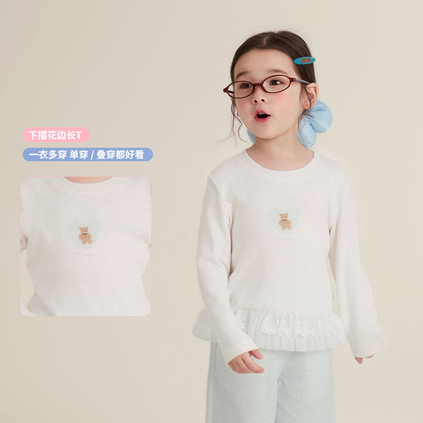 大小卷2026新款春款女童下摆荷叶边花边打底衫女宝宝韩版百搭上衣