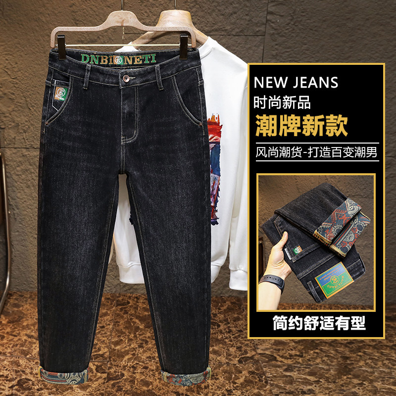 2026春季新款潮流男士牛仔裤高品质舒适修身直筒长裤男潮牌刺绣款