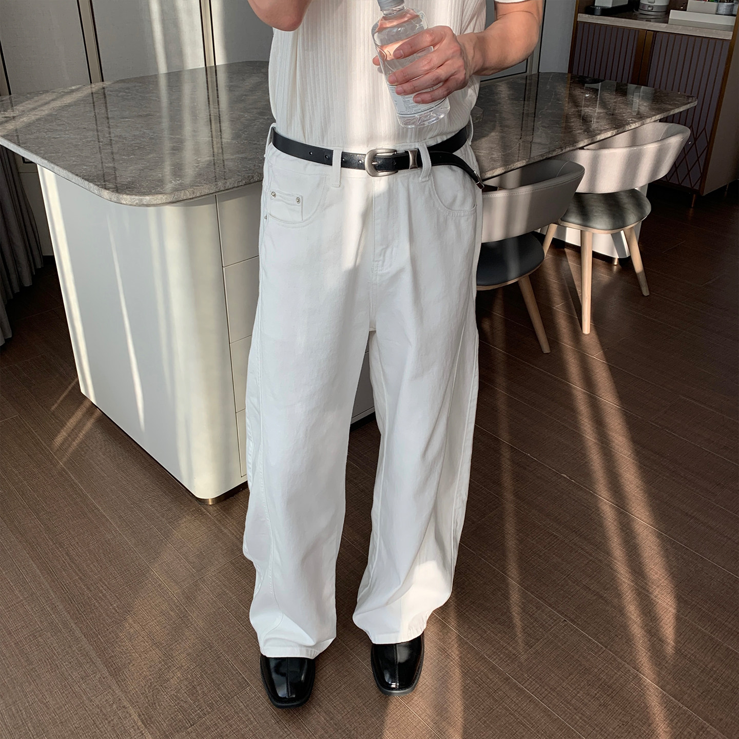 Hualun潮牌痞帅白色牛仔裤2026新款男宽松直筒裤韩版纯棉阔腿裤子