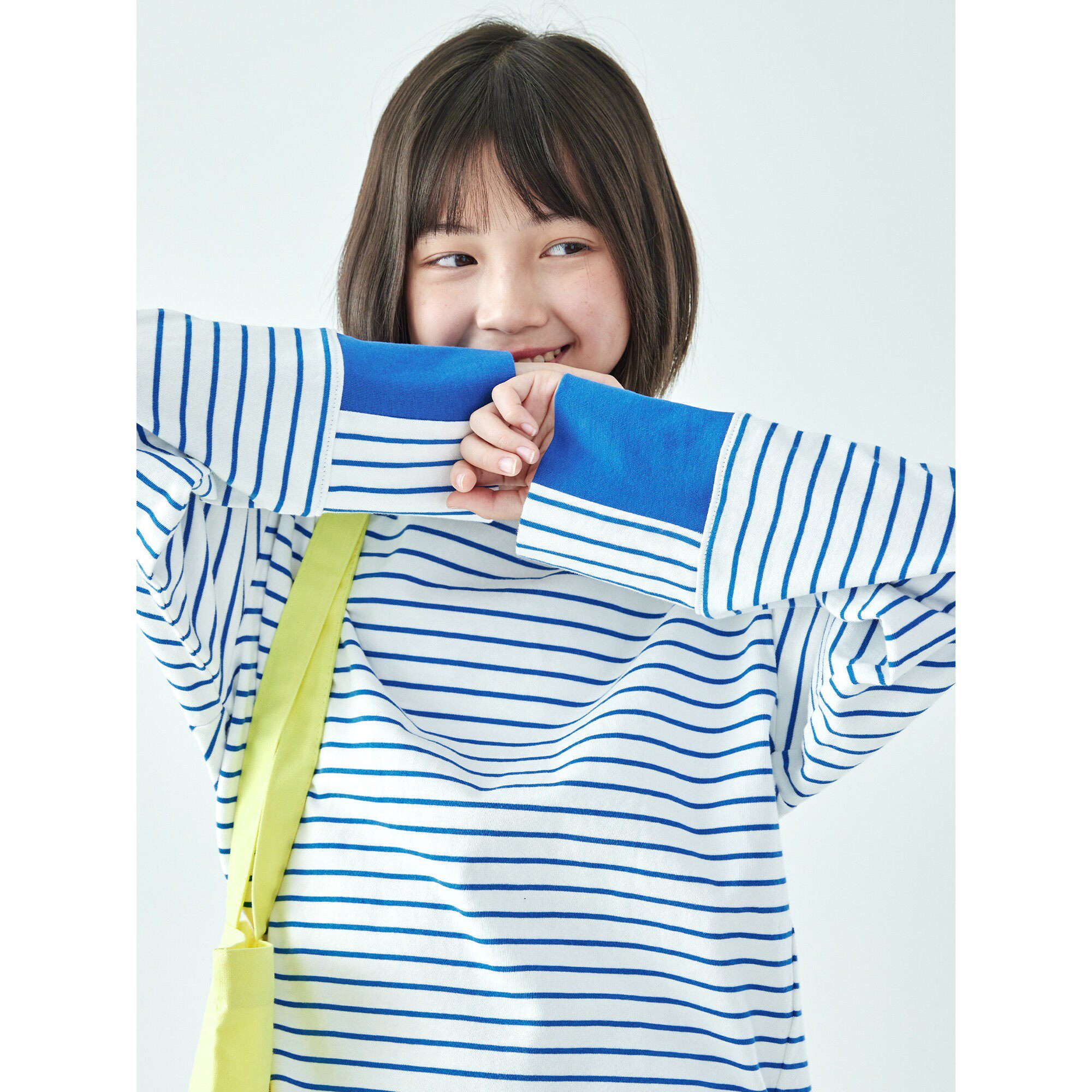 26年春季新款亲子中大女童经典条纹长袖T恤纯棉简约宽松上衣百搭