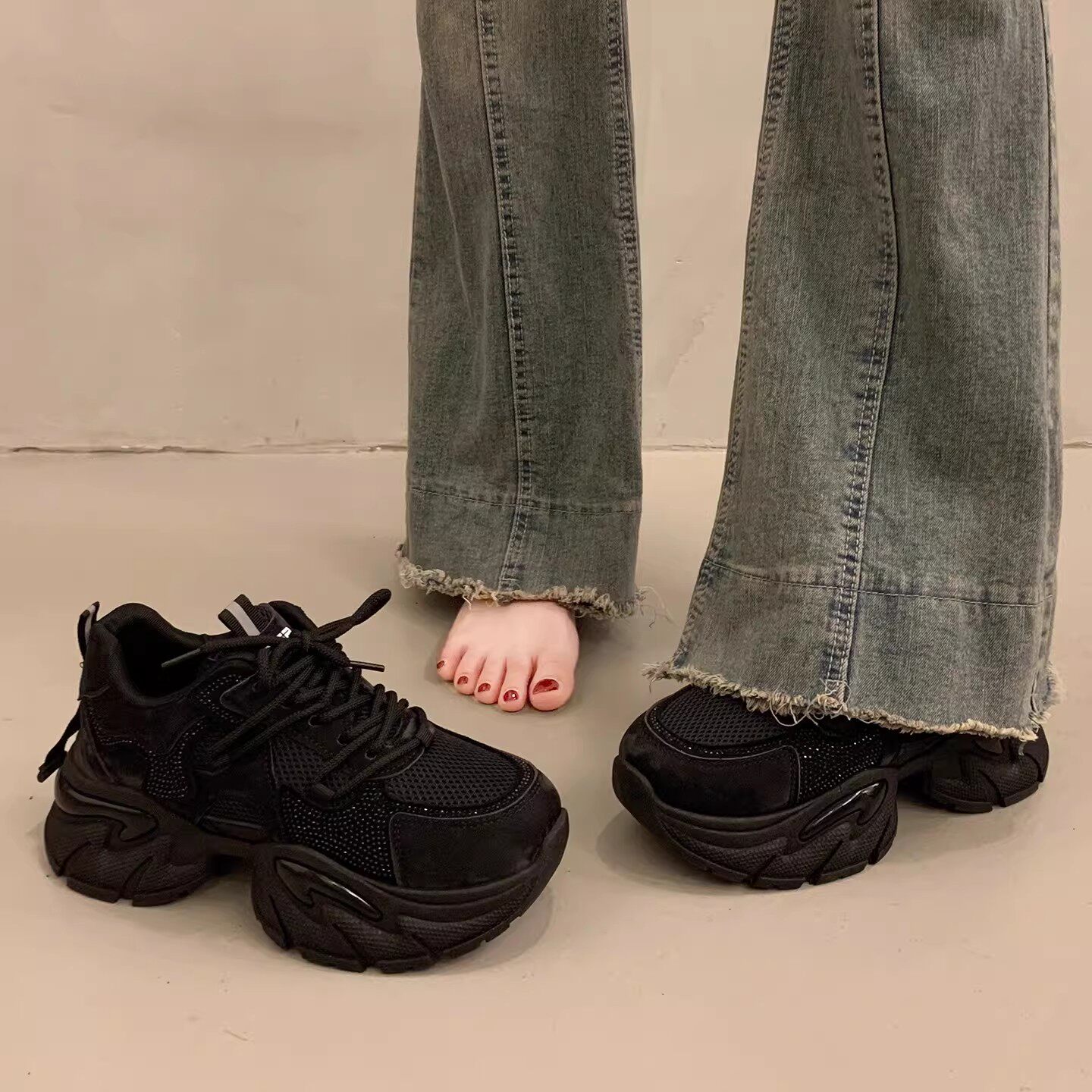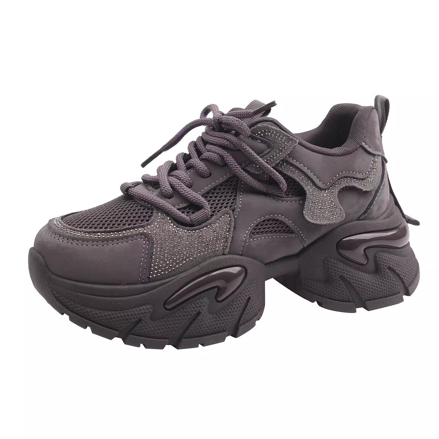 欧货百搭厚底老爹鞋女增高显脚小2026超火新款春季灰色运动休闲鞋