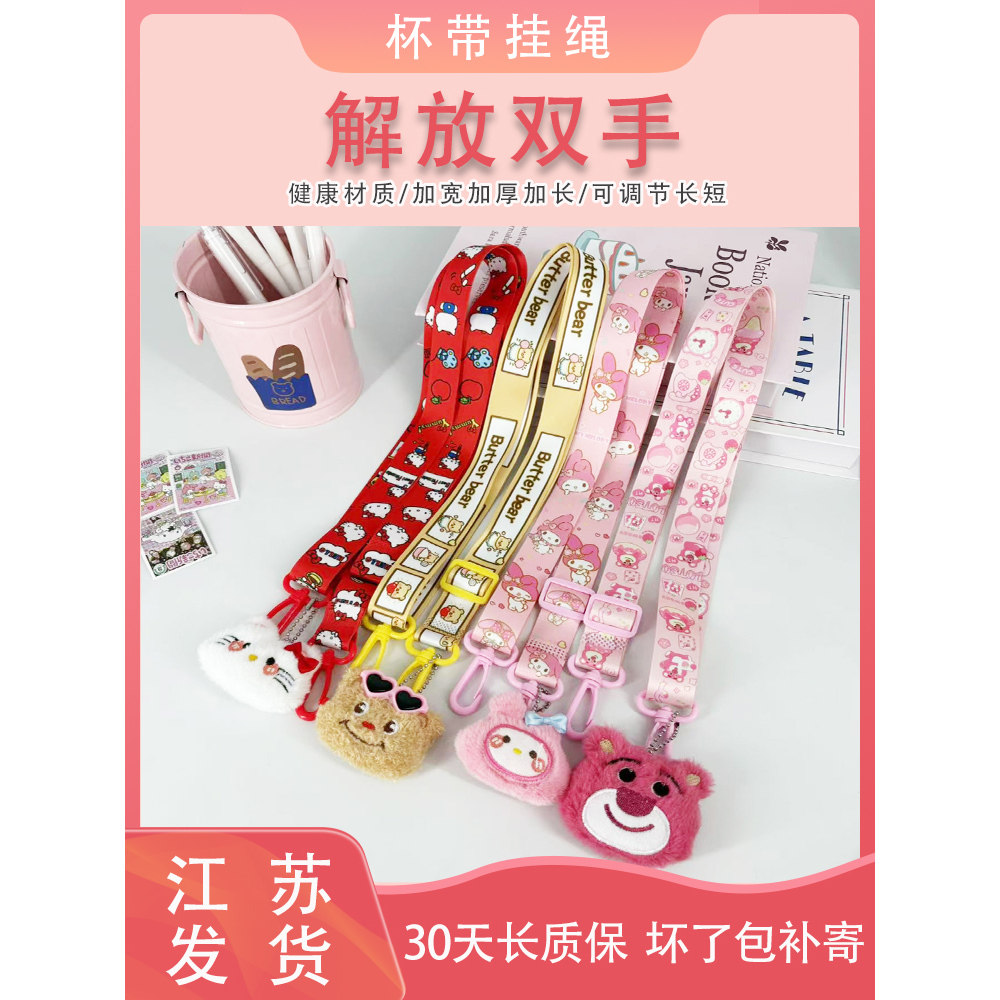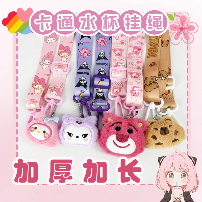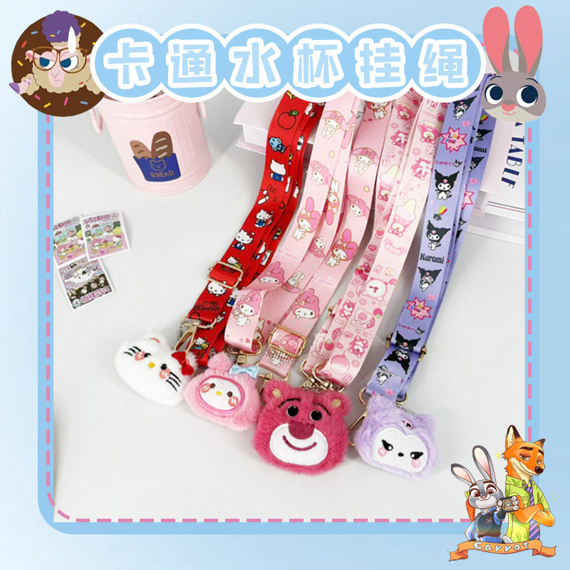 儿童便携水杯带耐用卡通可爱水杯挂绳编织手机链斜跨腕带式手提链