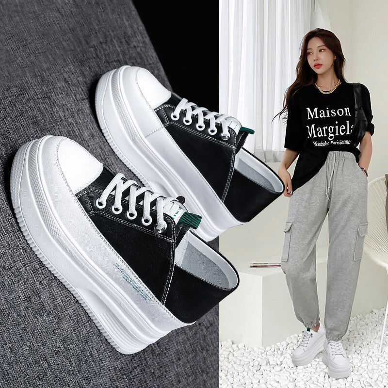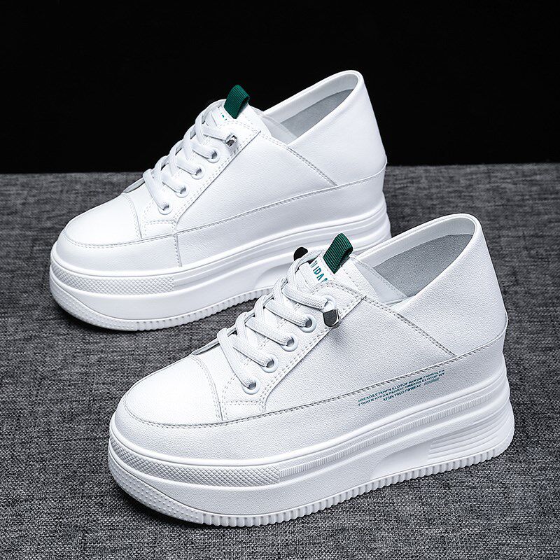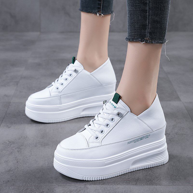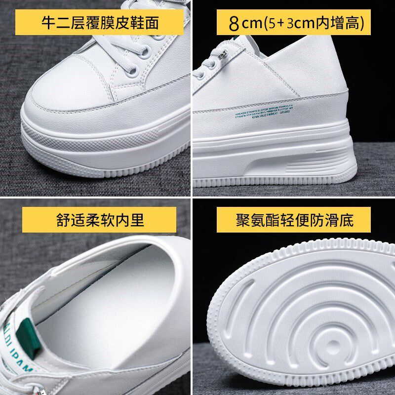 8CM内增高女鞋真皮爆款百搭小白鞋33码小个子两穿厚底轻便松糕鞋
