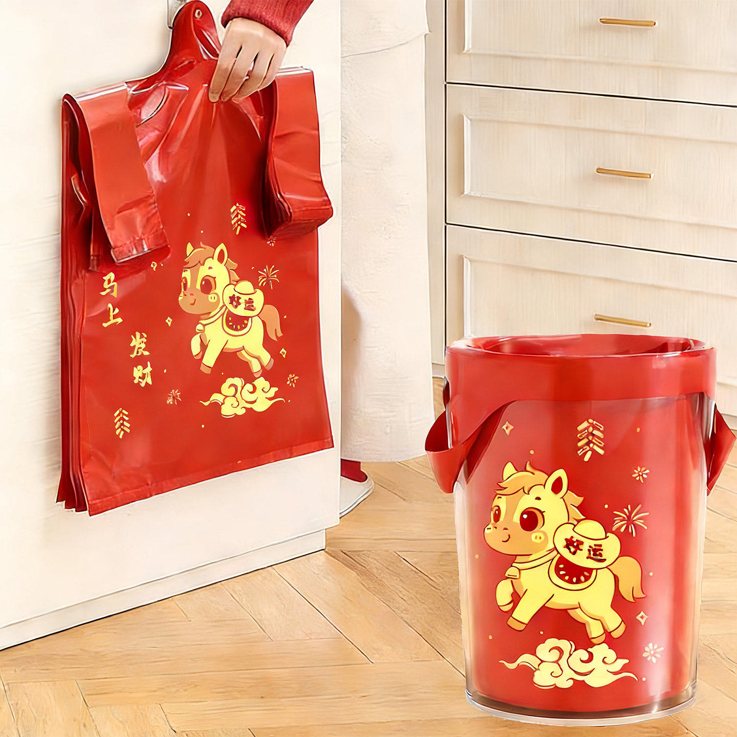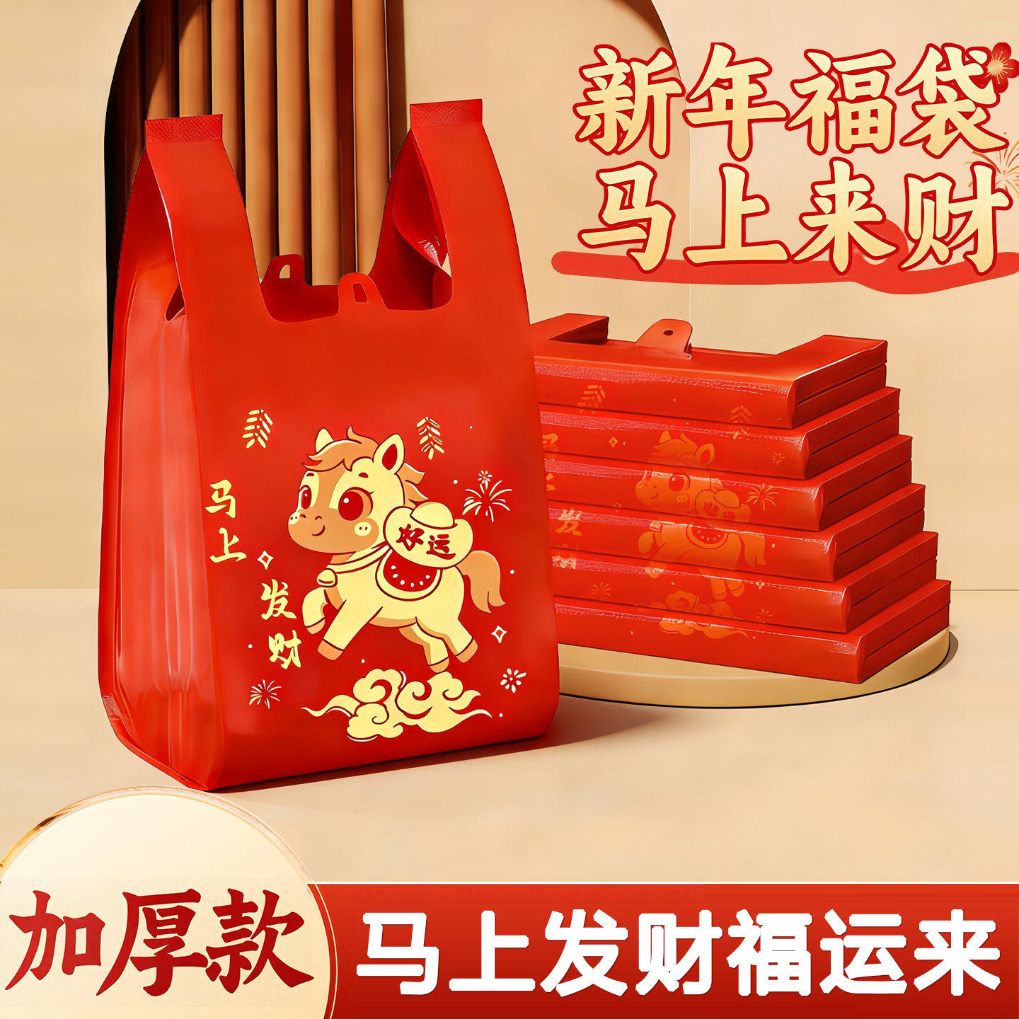 2026新款马年塑料袋加厚烫金喜庆红色元旦礼品袋背心式家务清洁袋