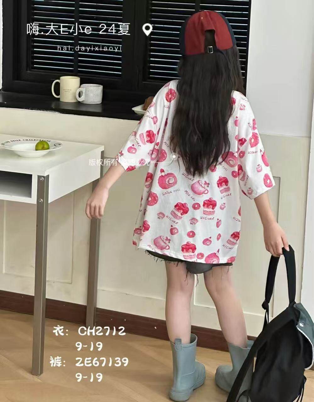特价款大E小e品牌夏款女童中大童潮酷甜美短袖T恤儿童韩版宽松