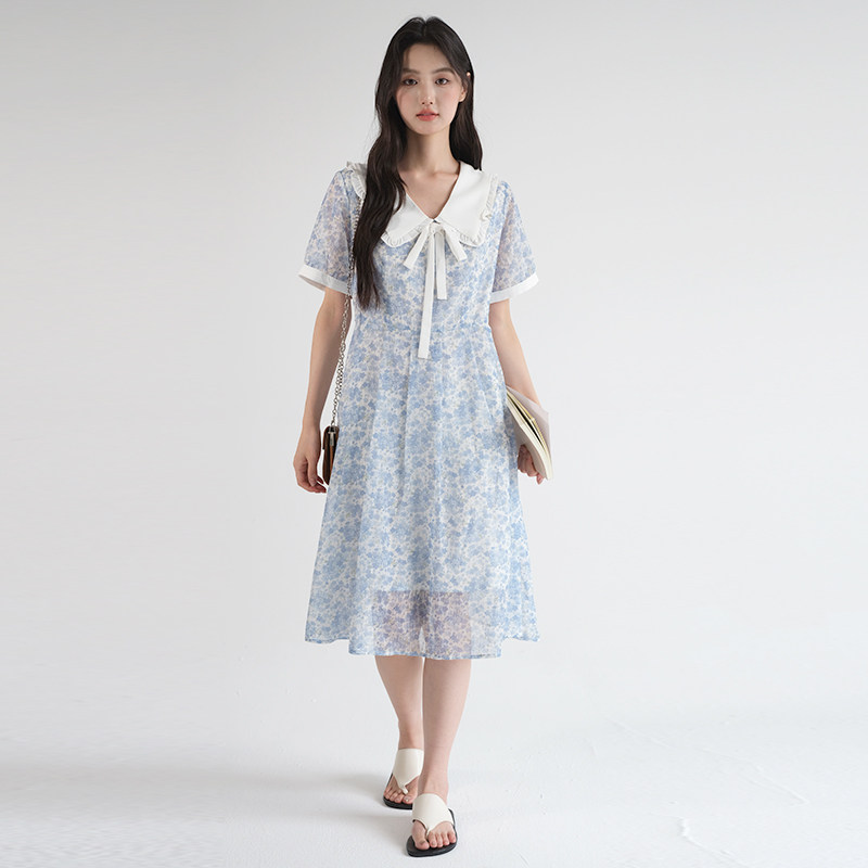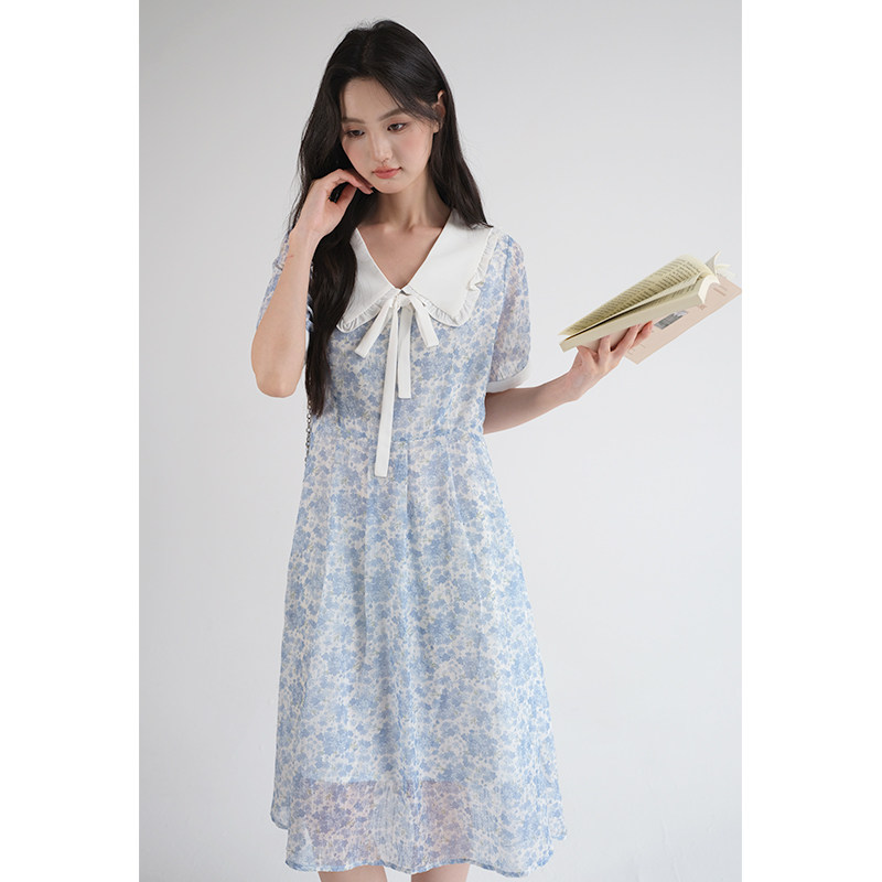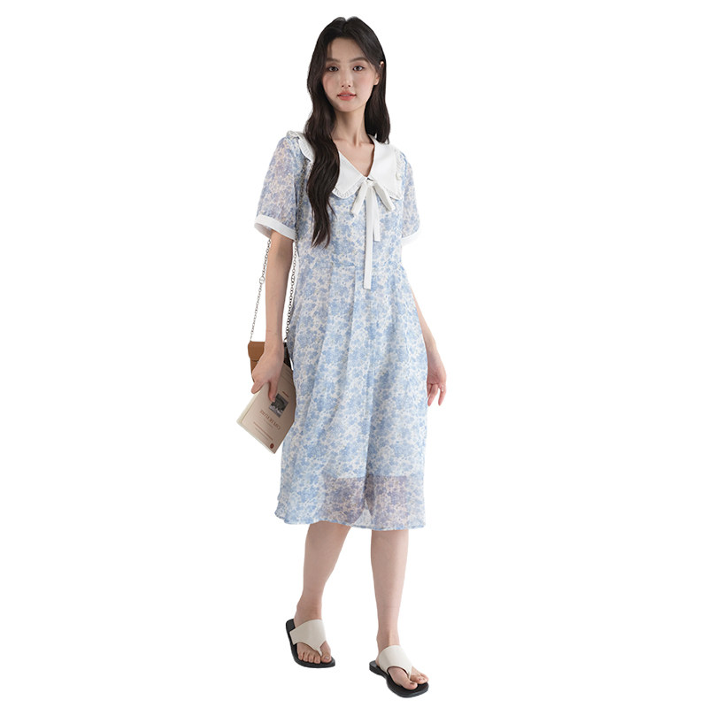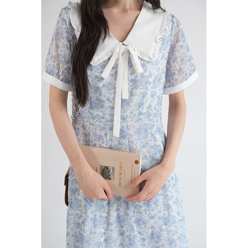 311线报网描述:法式高级感娃娃领巨显瘦收腰遮肚碎花连衣裙