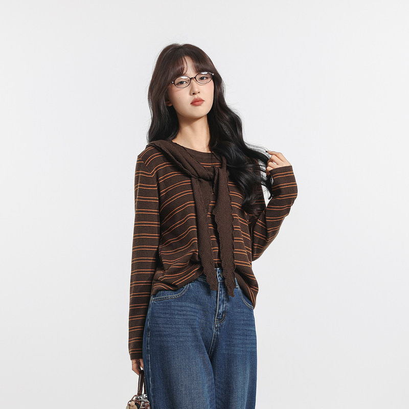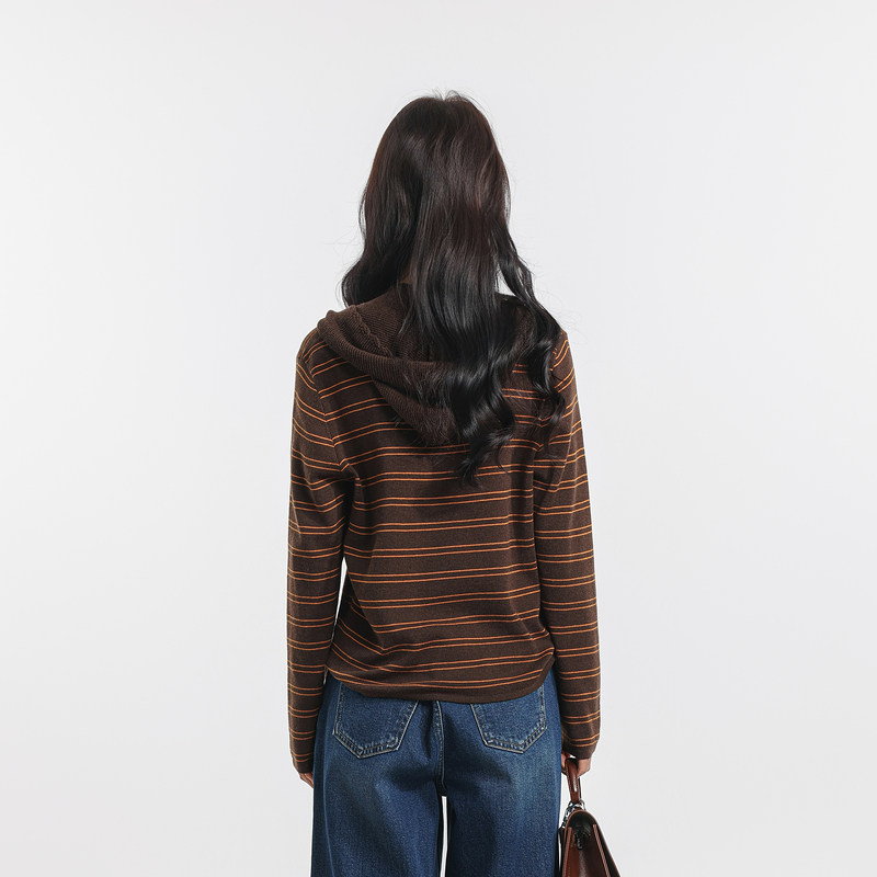 记忆的起点条纹毛衣2025冬季新款时尚披肩连帽针织上衣69GD52218