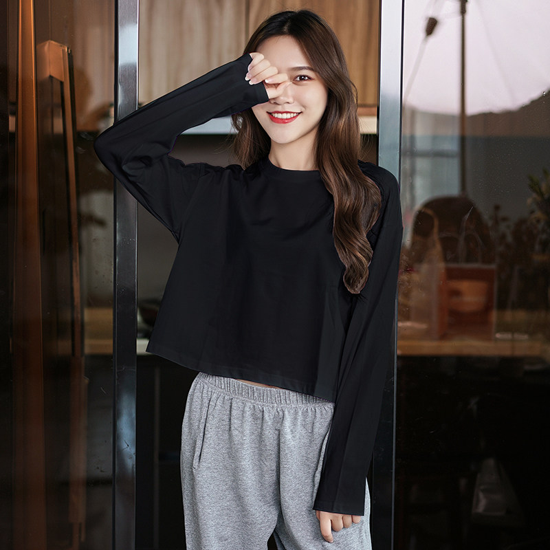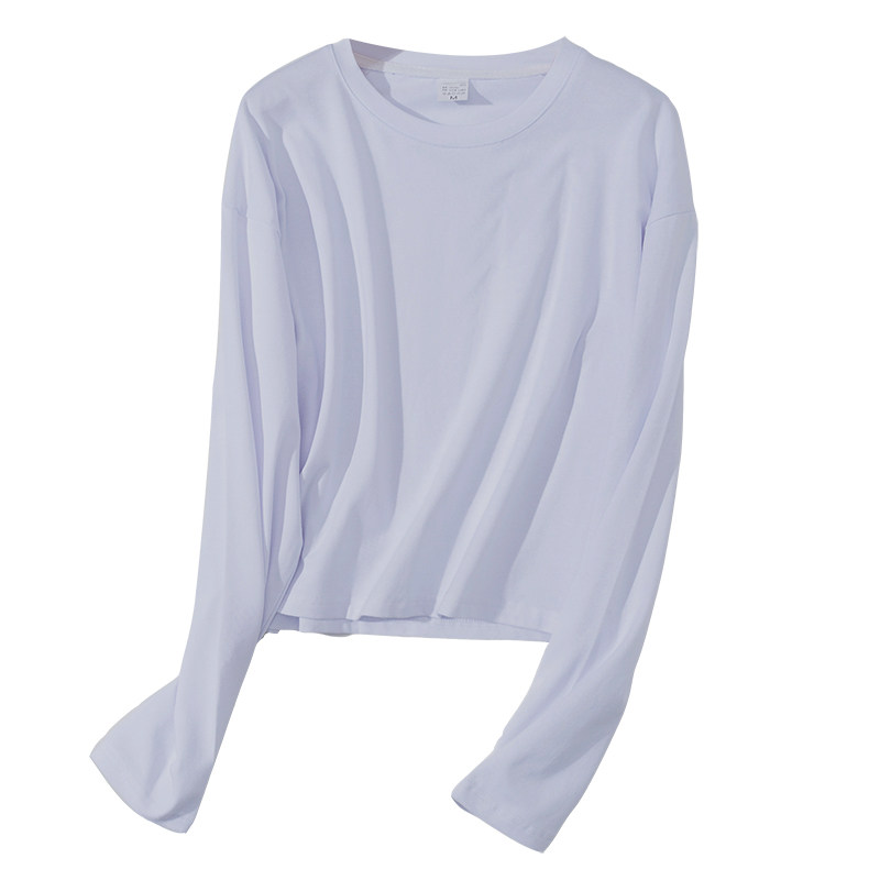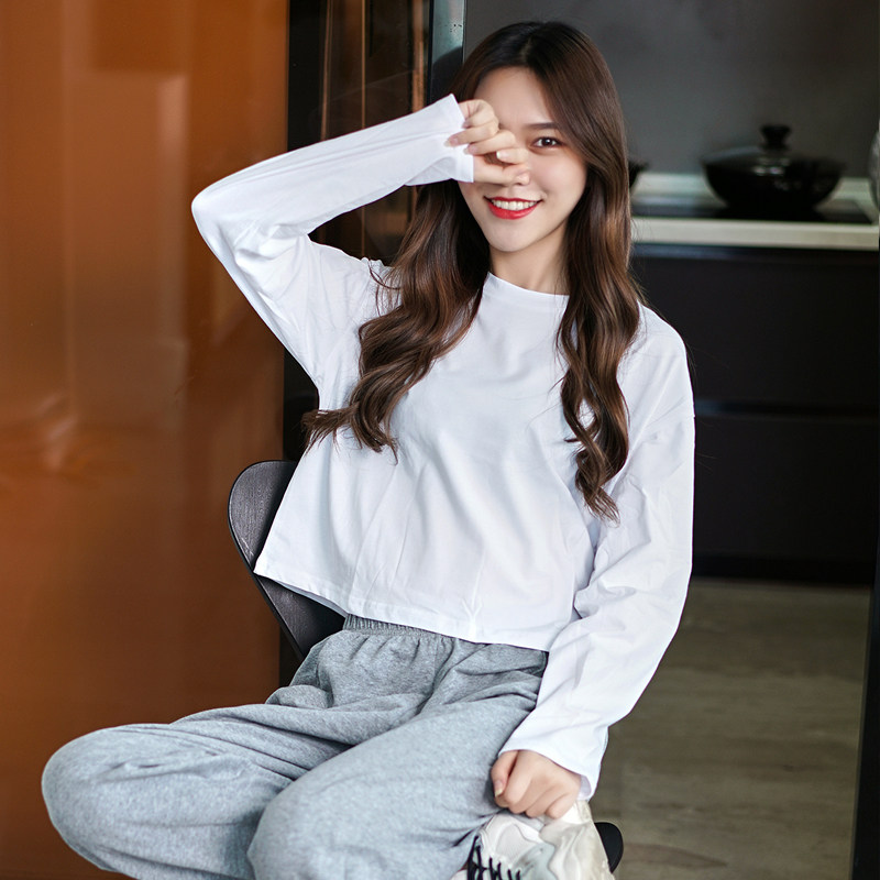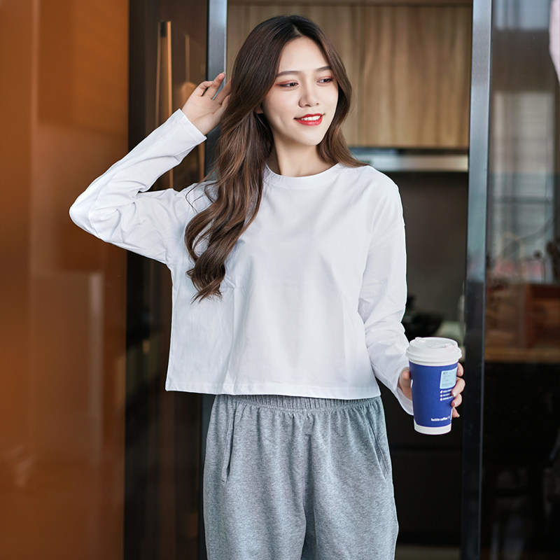 白色圆领宽松长袖t恤女2026新款短款打底衫纯棉chic早春气质上衣