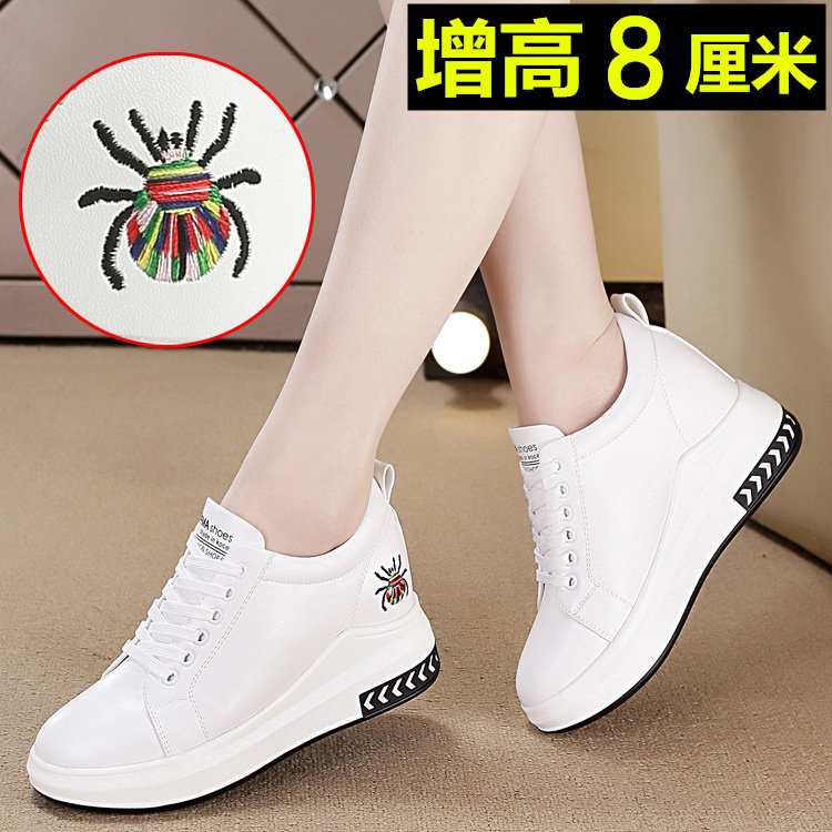 小白鞋女内增高女鞋8cm增高厚底松糕鞋夏天透气镂空坡跟板鞋单鞋